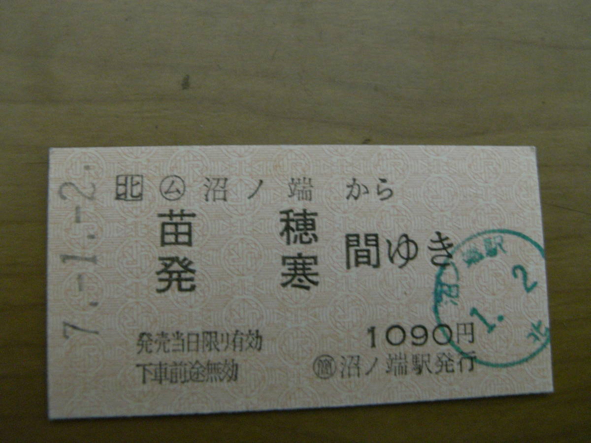 室蘭本線 ム沼ノ端から苗穂 発寒 間ゆき 1090円 平成7年1月2日 簡 沼ノ端駅発行
