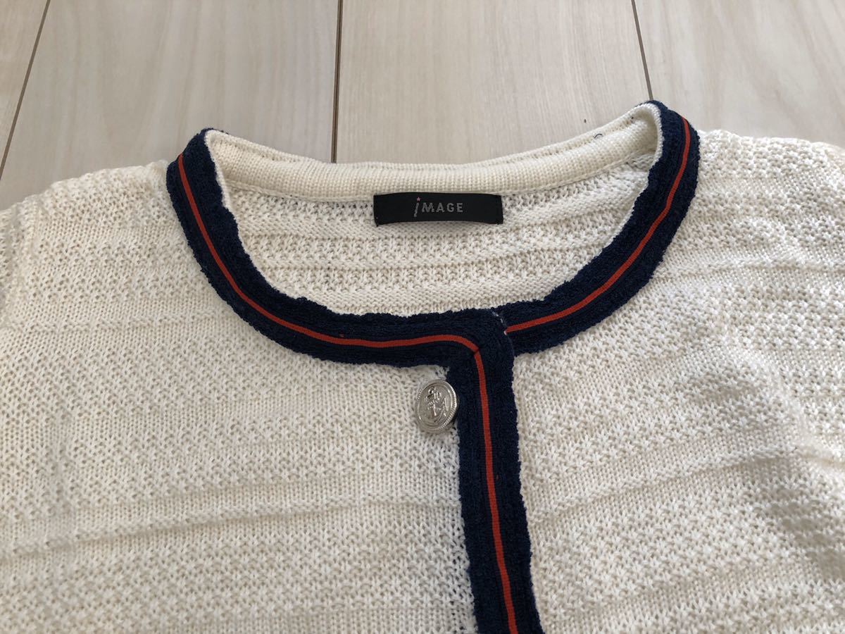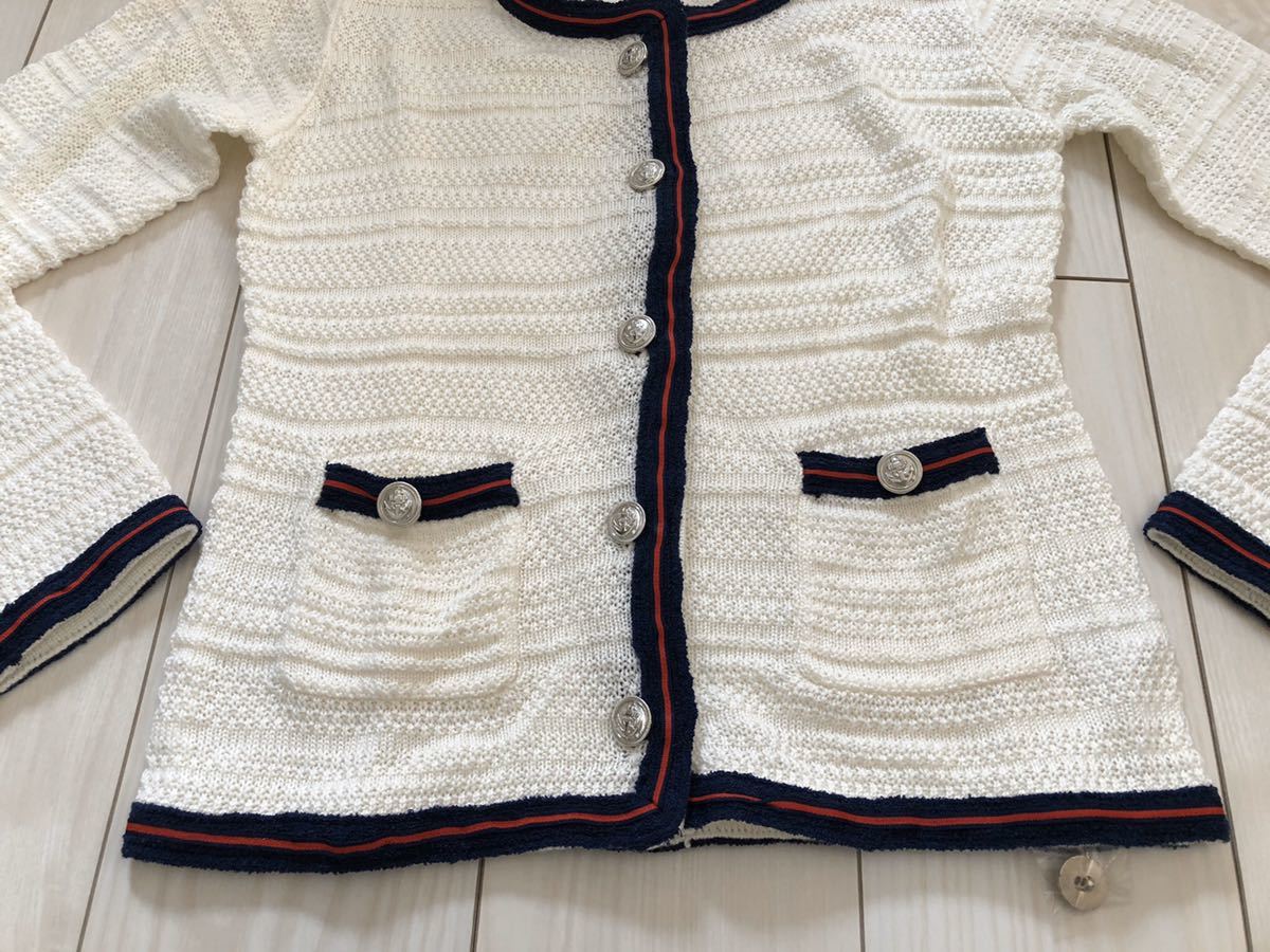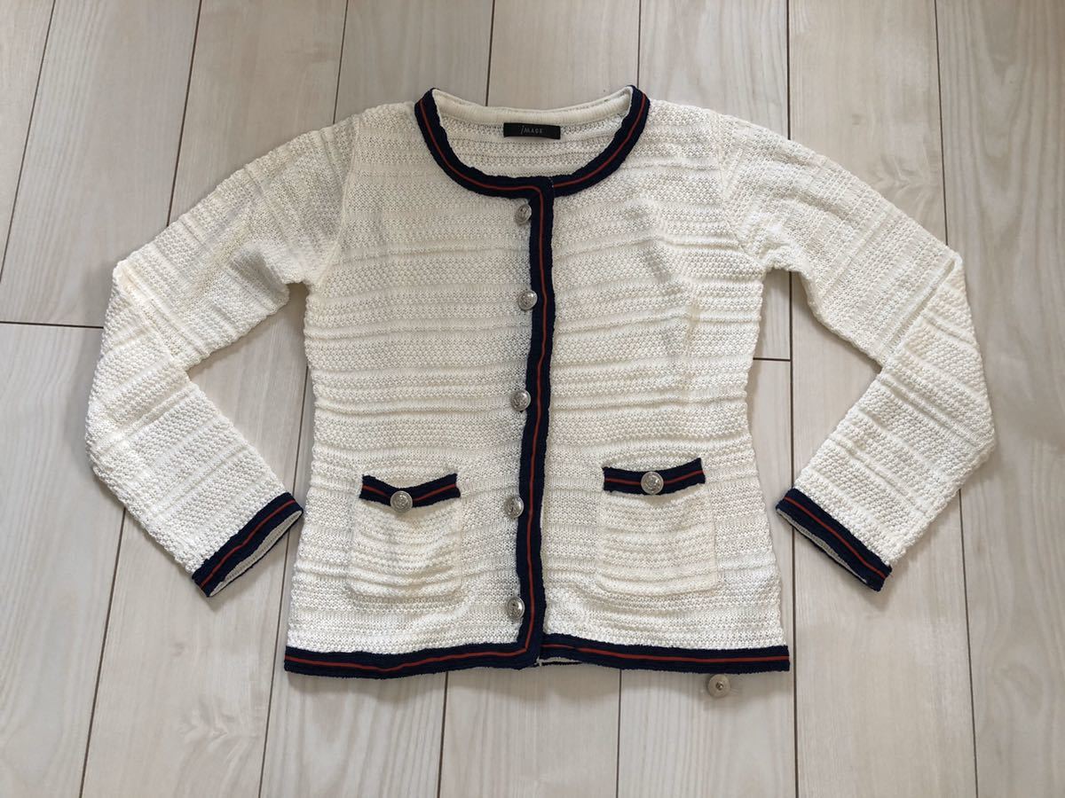 ☆ブランド・・・イマージュ ☆サイズ・・・Mサイズ 平置きの状態で、着丈・・・54cm 身幅・・・43cm 袖丈・・・60cm 素人寸法ですので参考程度にお考え下さい。 ☆お色・・・オフホワイト ☆フォーマルにもカジュアルにも活躍してくれるニットジャケットです。 タグが付いたまま自宅にて保管しておりましたので、細かいことをお気にされる方は入札をご遠慮下さい。 ☆自己紹介も必ずお読み下さい。