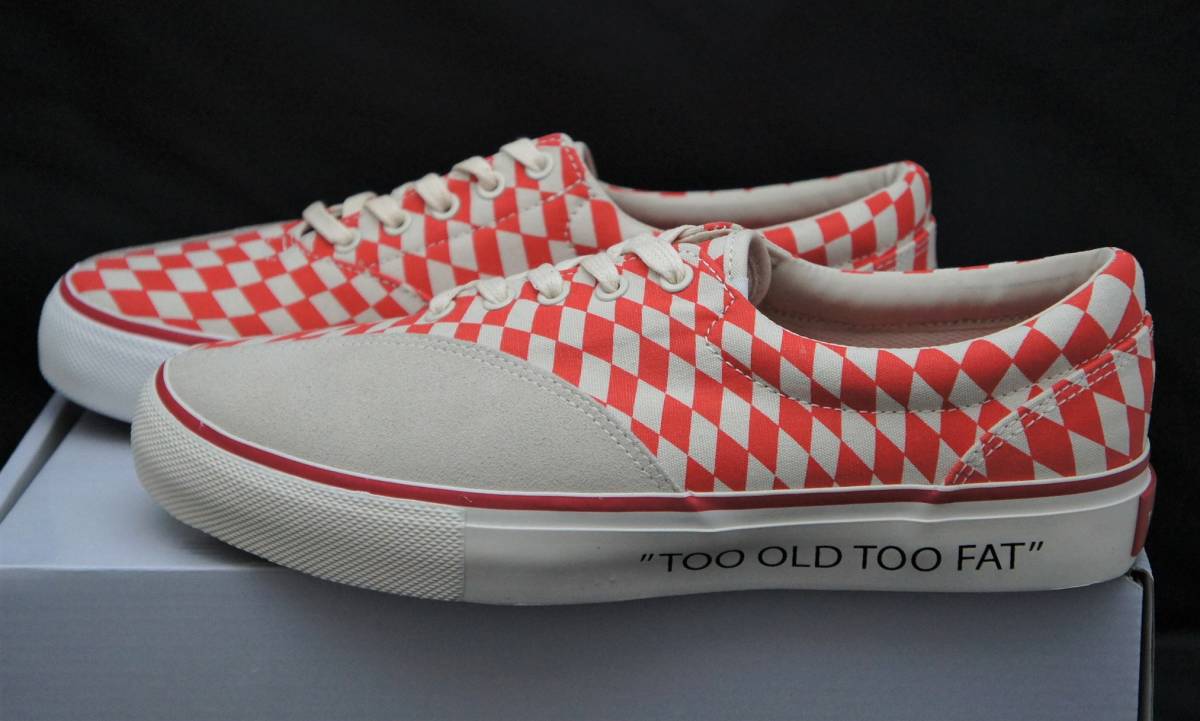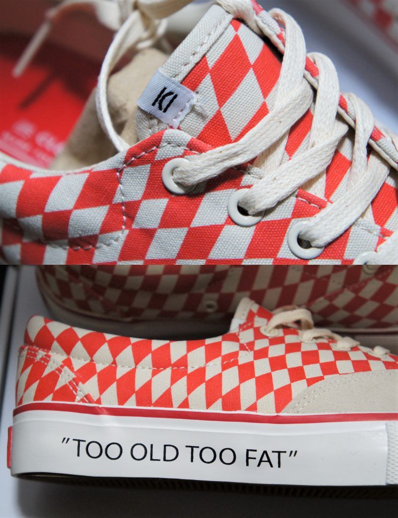 ソールのサイド外側に【TOO OLD TOO FAT】の文字を別注でプリントし、