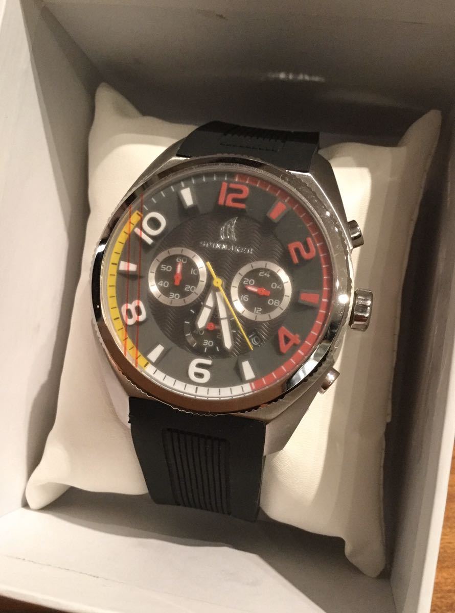 この複雑でカラフルなダイヤル構造は、スポーツクロノグラフの鮮やかな色の中に、機械的な魅力を兼ね備えています。