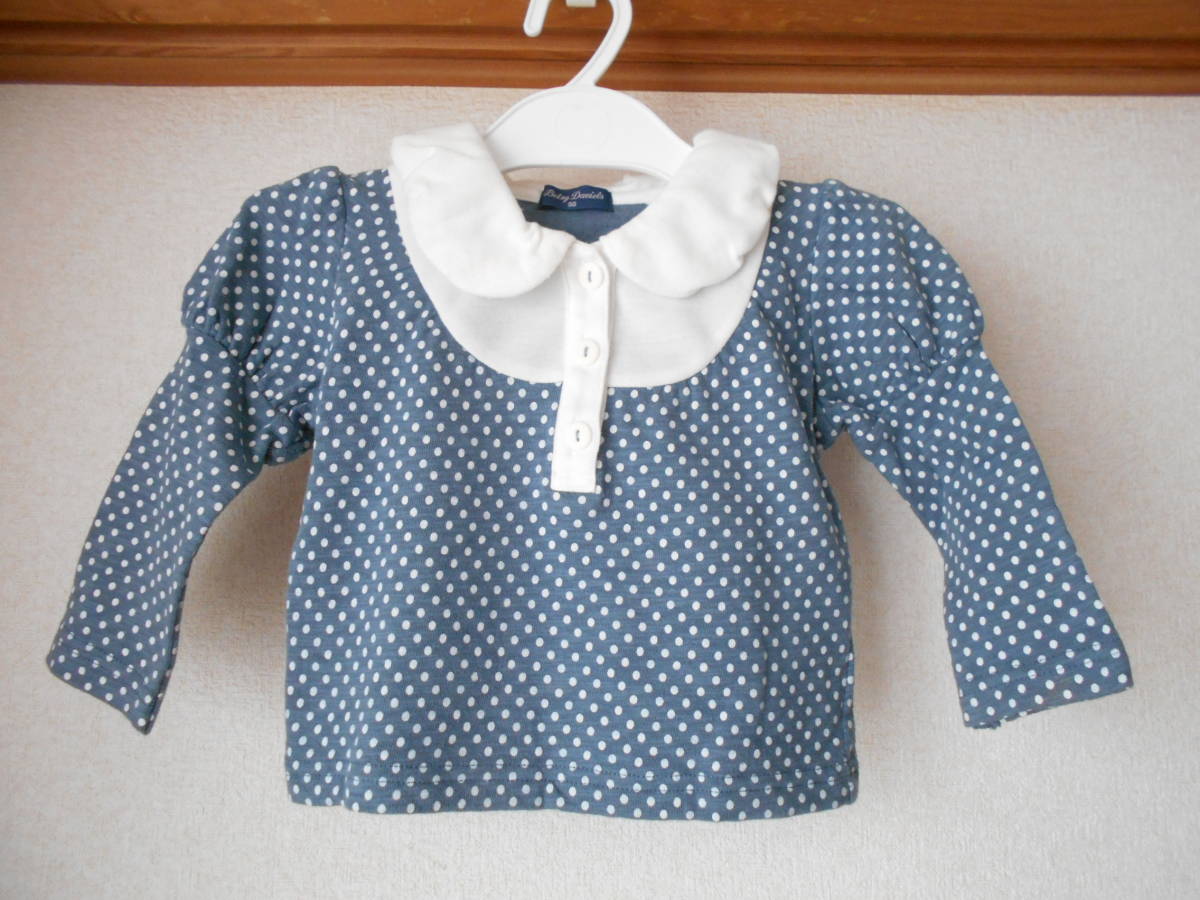 ★美品★水玉 襟とちょうちん袖が可愛いブラウス・長袖シャツ サイズ90 ☆カットソー