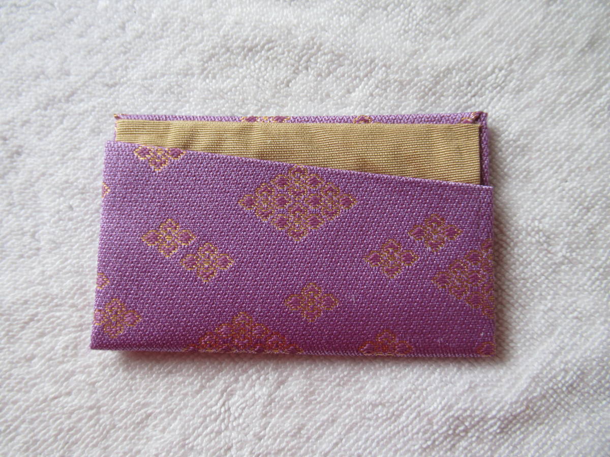 手作り 金襴カードケース 定期入れ 保険証入れ (うす紫地金)