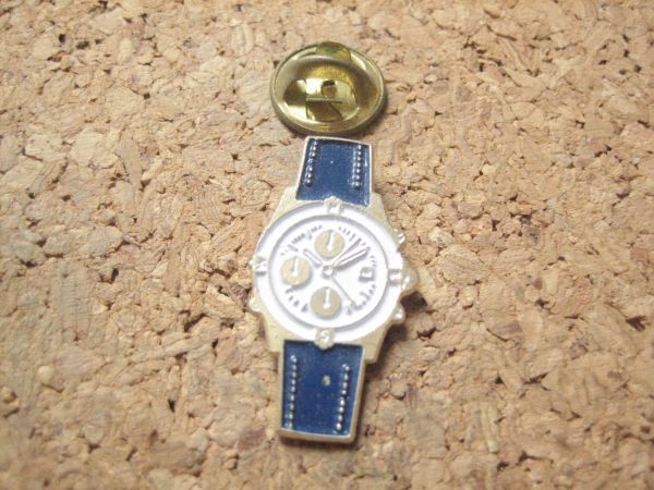 ピンバッジ クロノグラフ 腕時計 ブルー 白