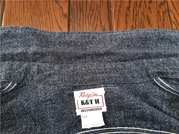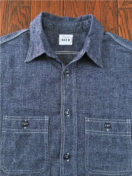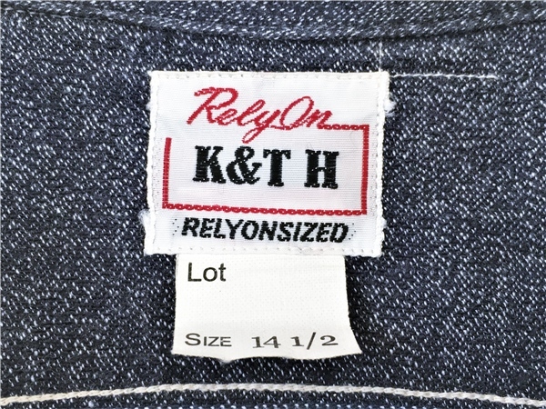 K&T H RelyOn マチ付き ビンテージ スタイル ワークシャツ 14.5 ヤンクボタン 検索 ごま塩 ネイビー シャンブレー ワーカーズ