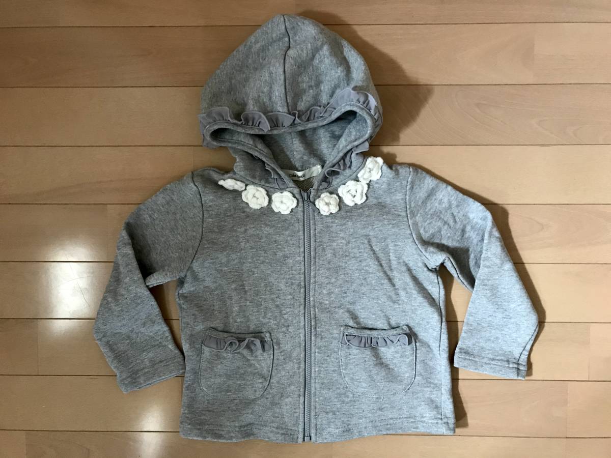 フラワーモチーフやシフォンフリルの装飾で女の子らしく仕上がったフルジップパーカー♪