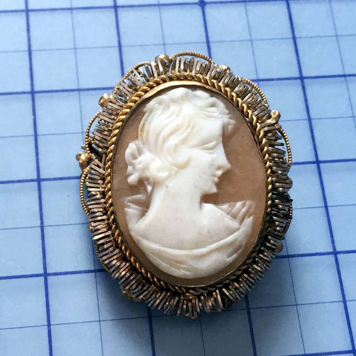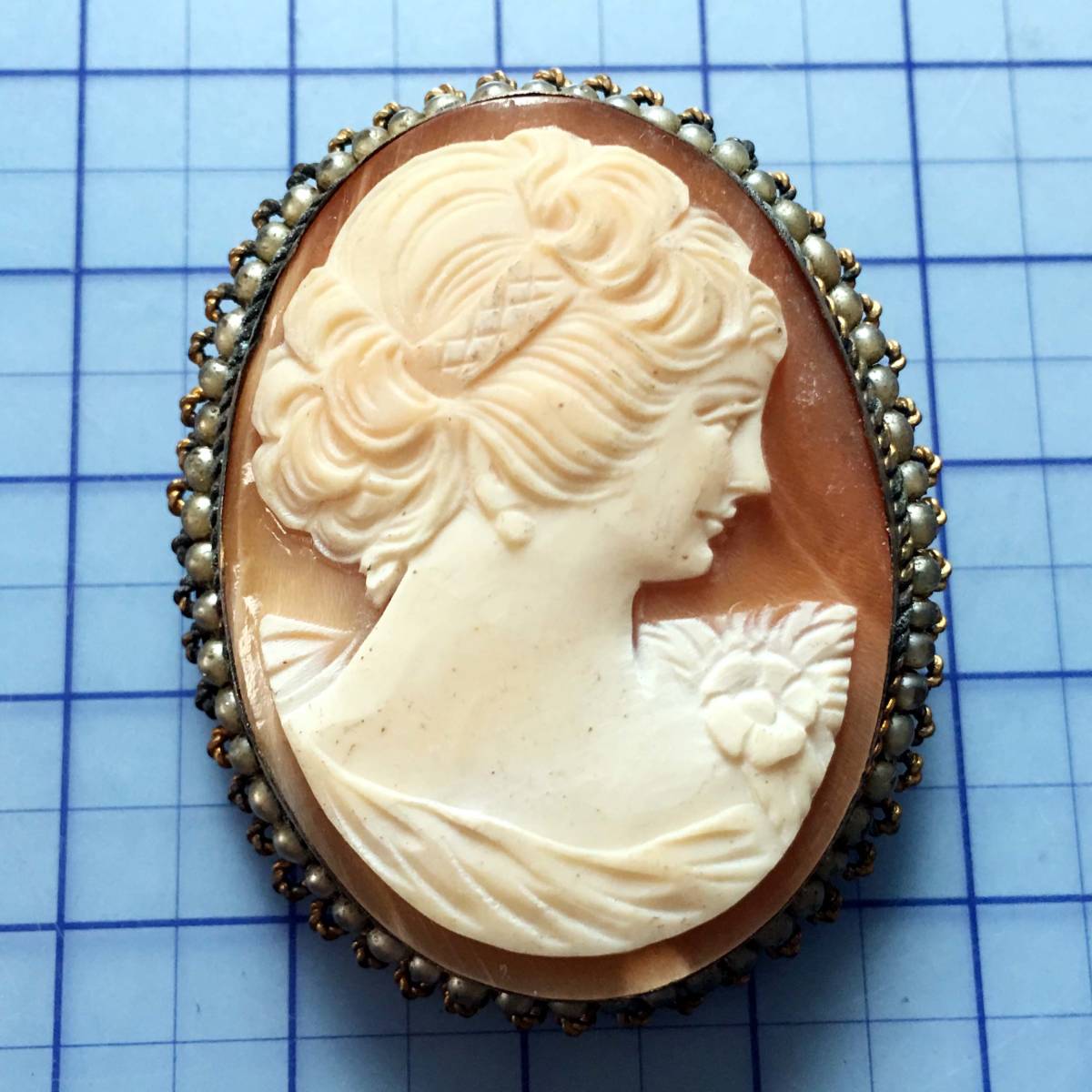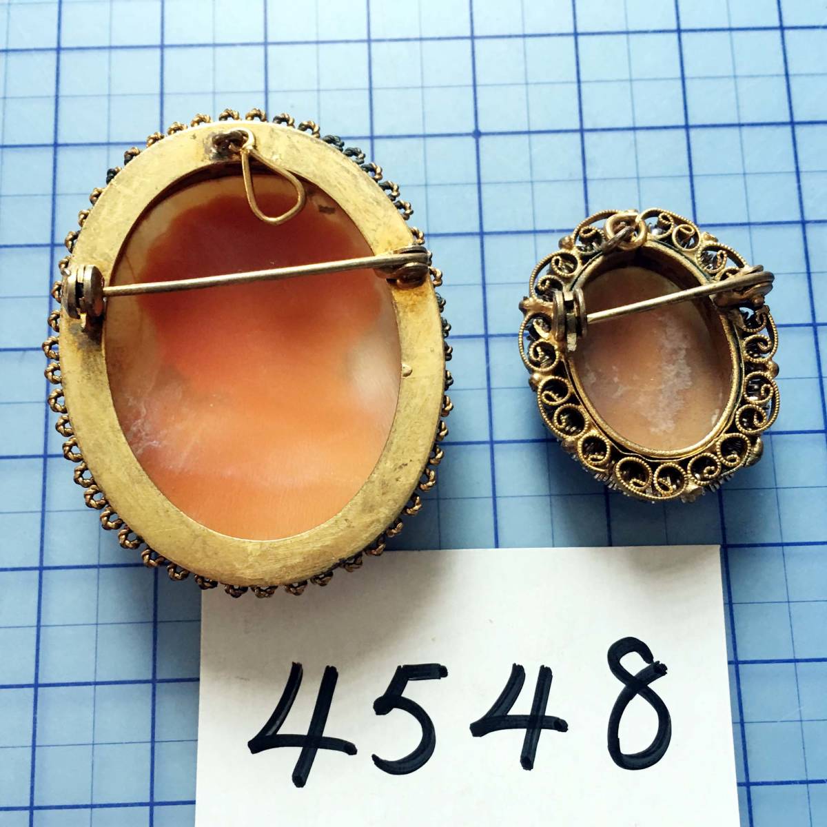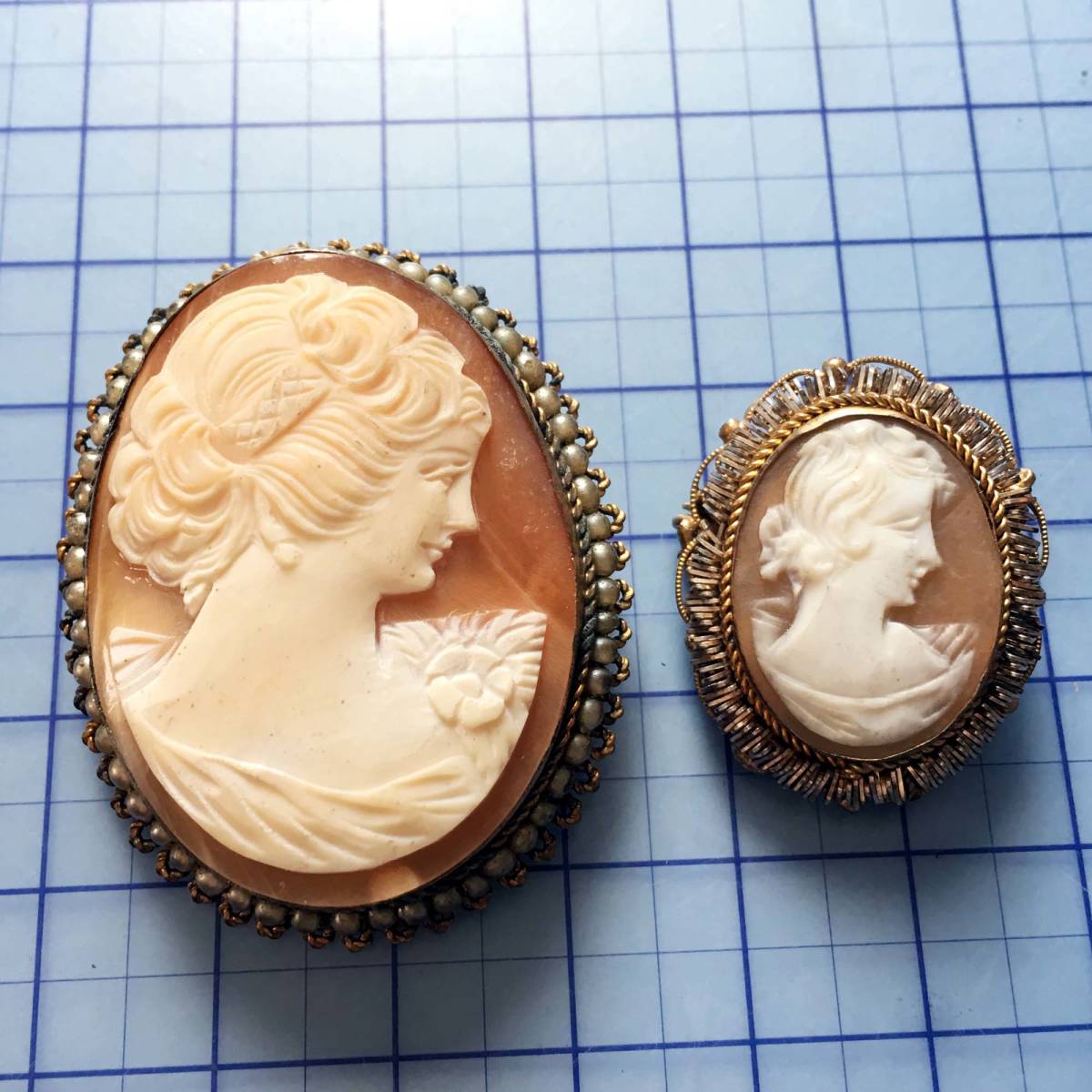 ヴィンテージ 天然貝シェル 美人彫刻 2WAYペンダント ブローチ お得2点セット No.4548