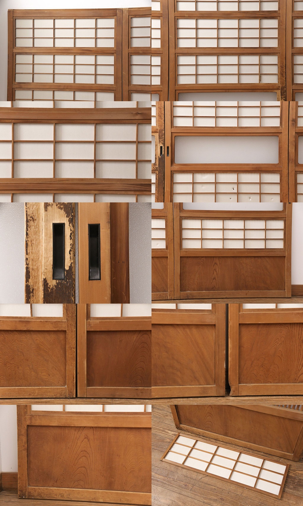 R-051445 アンティーク建具 腰板ケヤキ材 落ち着いた和を醸し出す裏障子付き格子戸4枚セット(引き戸、障子戸)(R-051445)