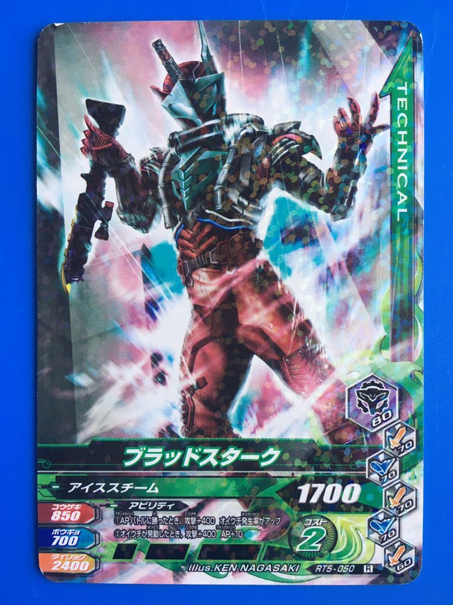 仮面ライダー、ガンバライジング・第RT5弾からNo.050《仮面ライダーブラッドスターク》の登場です。発送は、普通郵便を利用します。(特にご希望のない場合)おとりまとめも可能ですが、送料に変動する場合がございます。また、送料のご請求は、自宅での計量を基準にご請求させていただいておりますので、実際の金額と差異が出る場合もございます。予めご了承ください。他にも多数出品中です。まとめてこの機会にいかがでしょうか?ご質問お待ちしております。