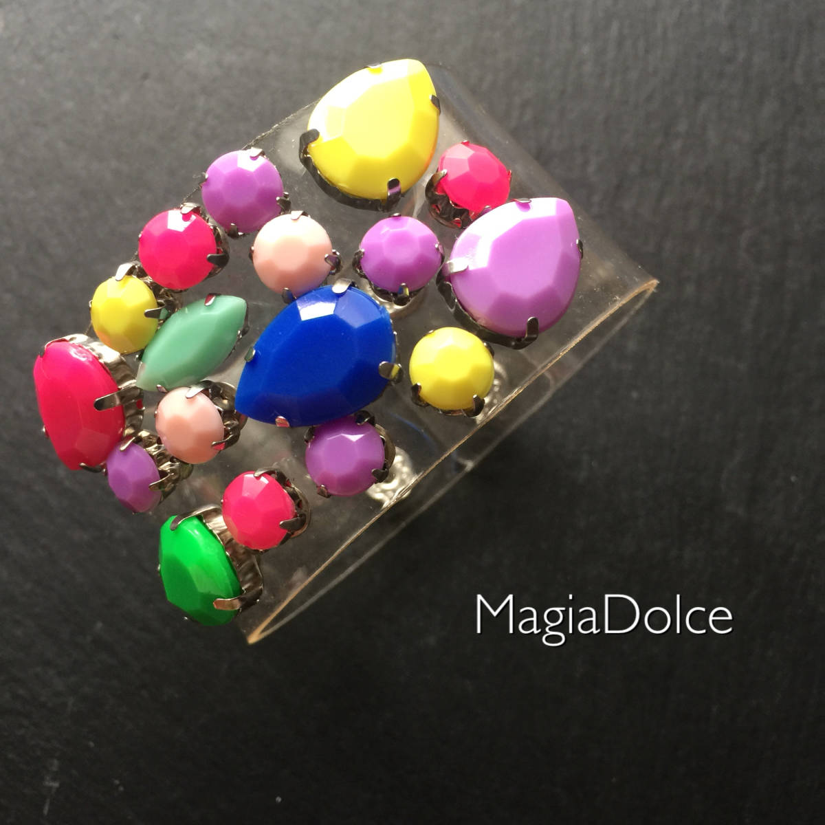ボリューム感があるカラフルビジューがかわいいバングルです