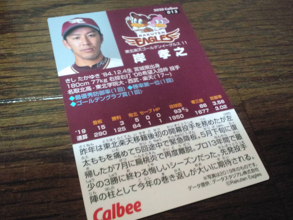 [同梱可]★岸孝之(東北楽天ゴールデンイーグルス)★レギュラーカード(015)☆2020年カルビープロ野球カード第1弾
