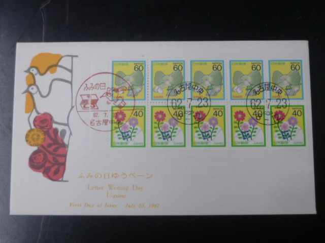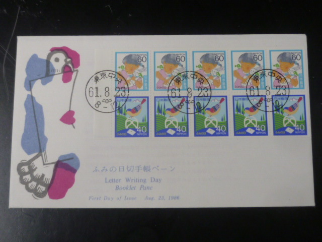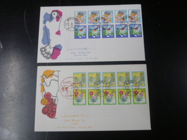 20 P 日本切手 FDC 1986-87年 ふみの日 ゆうペーン貼 計2通