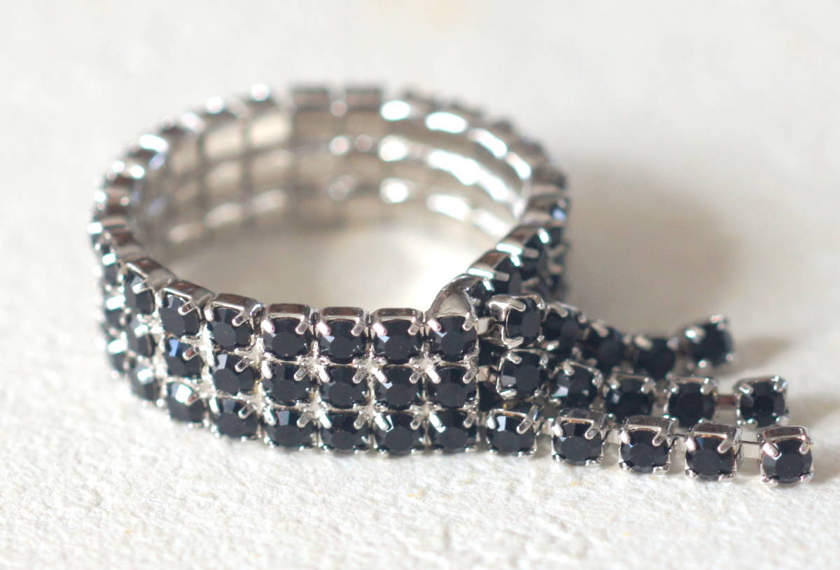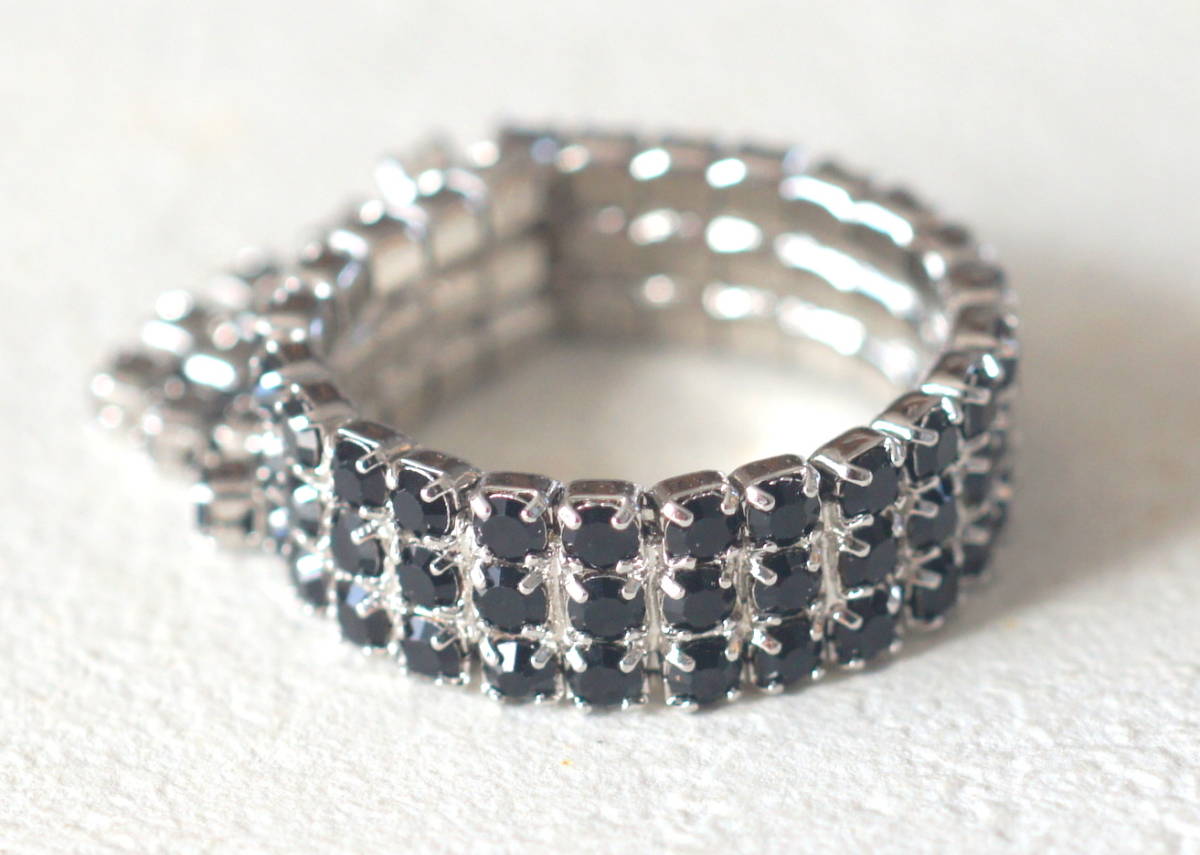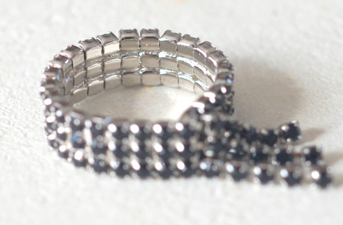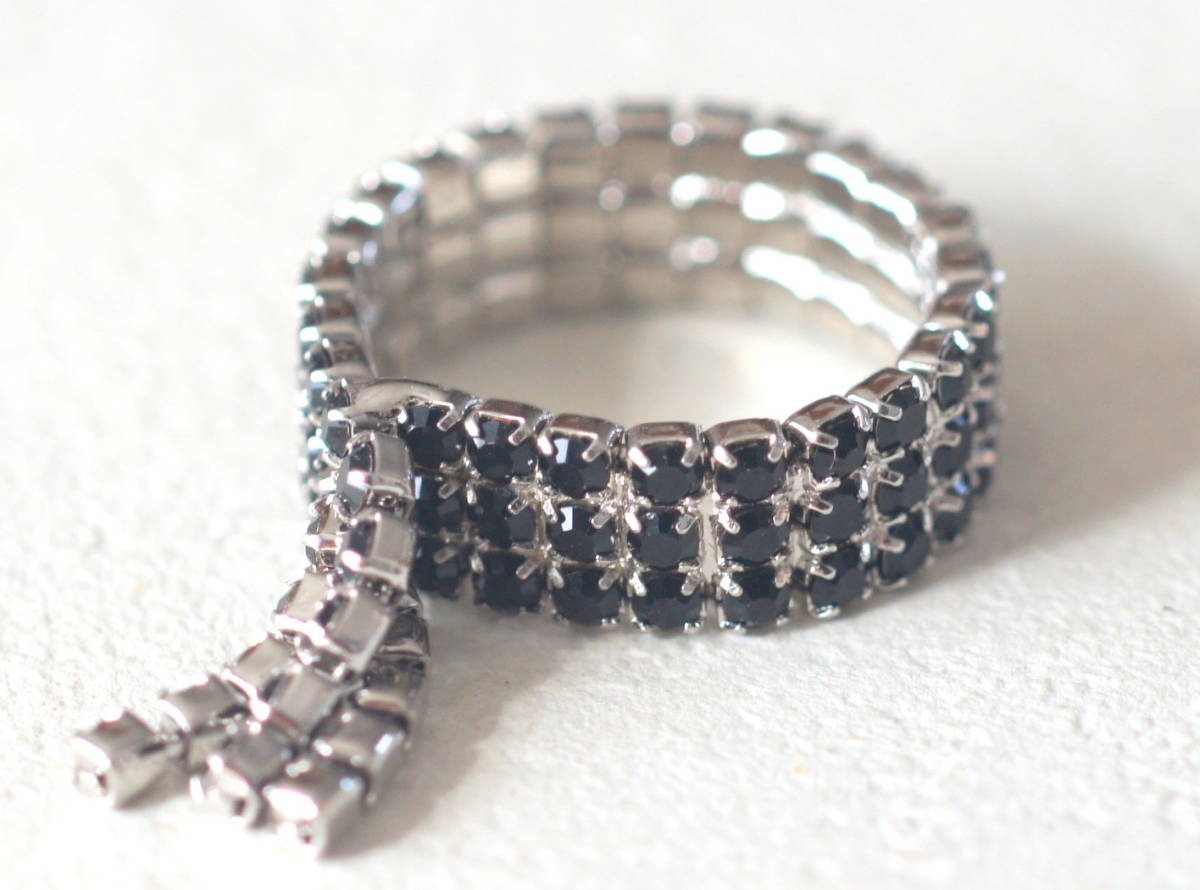 未使用 ダイヤレーンリング シルバーにブラックカラーの石付き サイズ約11号