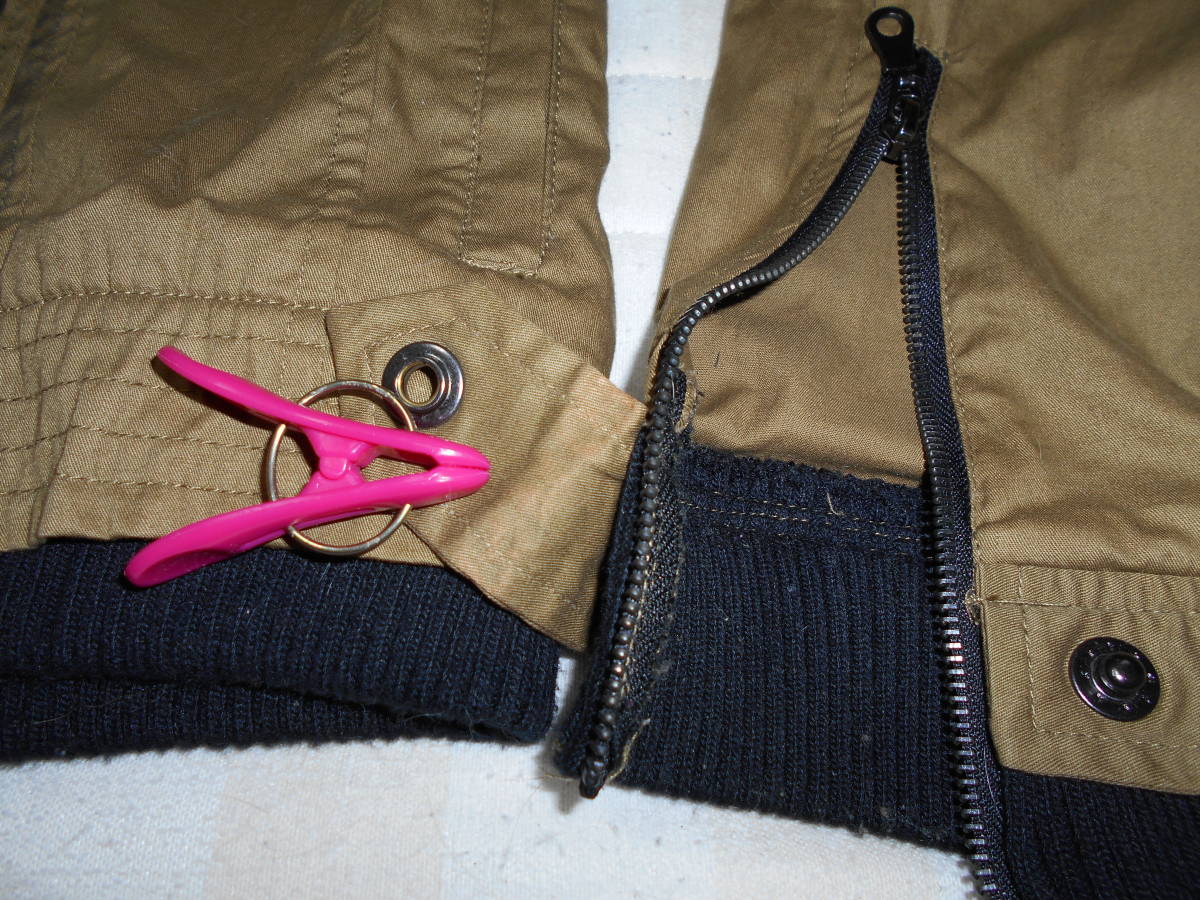 フライフロント部のジッパーの当たる面や袖ストラップの同部に錆汚れが付着しています。(画像5,6)