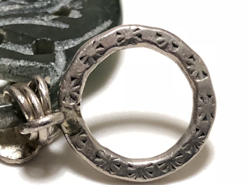 中国製の翡翠?を使用し、彫金を施した、透かし龍細工のペンダントトップです。翡翠?は未鑑定の為、真贋不明です。内部に薄いヒビがあります。