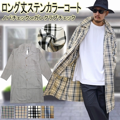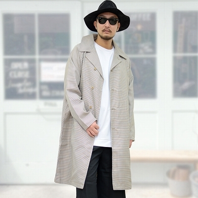 軽やかな質感のチェック柄ゆったり系ステンカラーコート ショップコート。