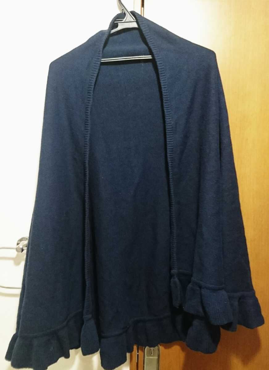 【中古品】裾のドレープが可愛い 紺色のストール 羽織もの