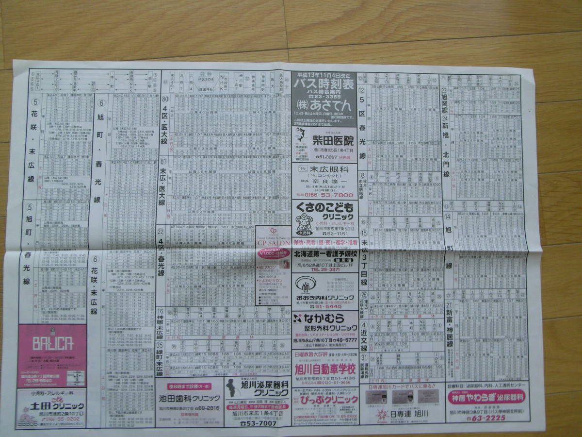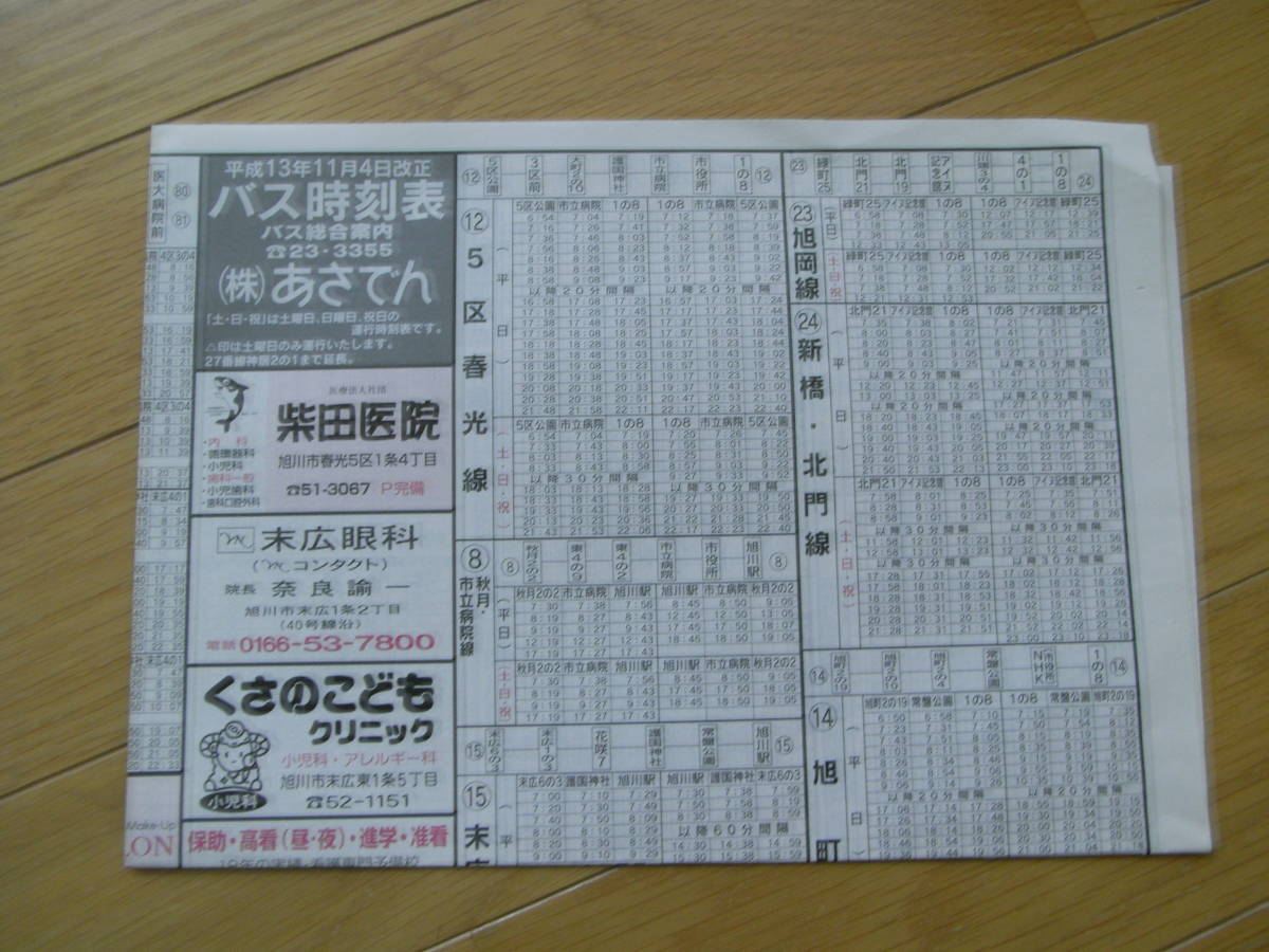 旭川電気軌道 あさでんバス時刻表 平成13年1月4日改正