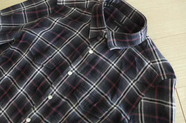 即決 送料無料 美品 秋冬 ボリオリ おしゃれなチェック柄 シャツ 42(16 1/2) グレー濃淡のカラーが素敵♪