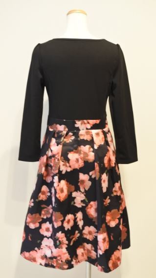 メーカー不明 ワンピース フレア 長袖 Sサイズ 花柄 切り替えデザイン 黒 bnbi k2h0207★