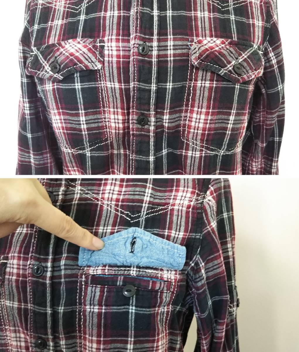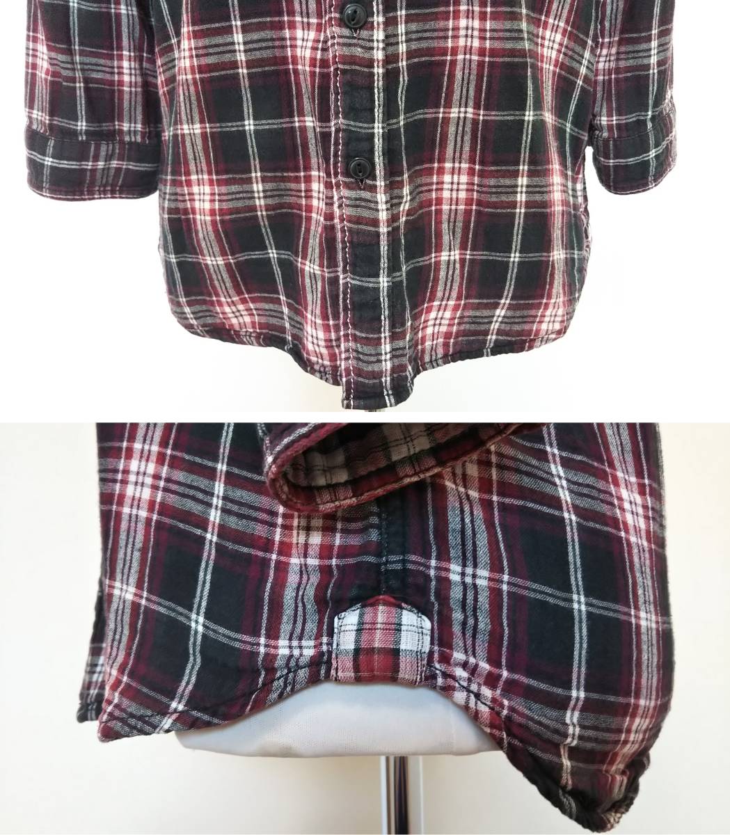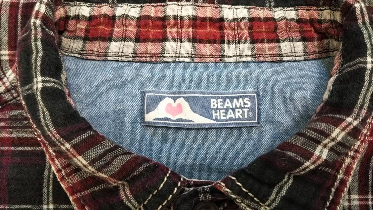 BEAMS HEART ビームスハート 7分袖ウエスタンシャツ チェック柄 ブラック・レッド系