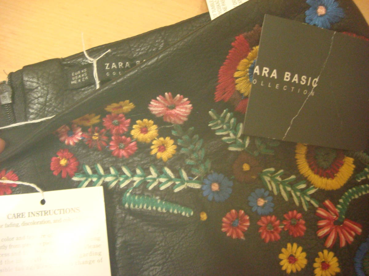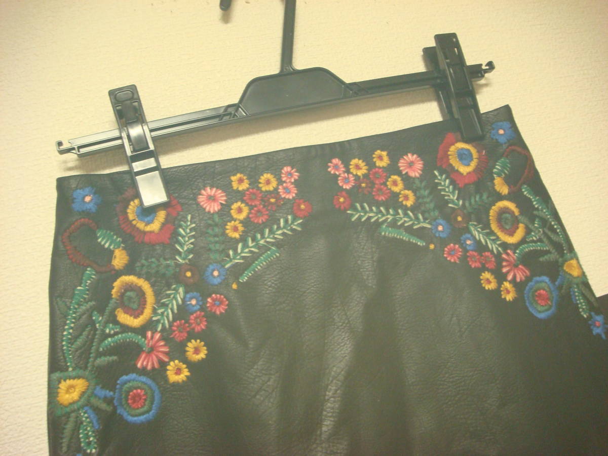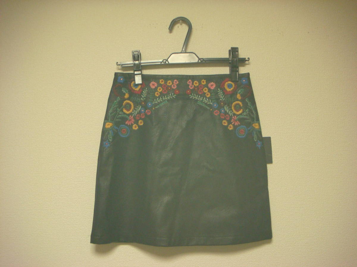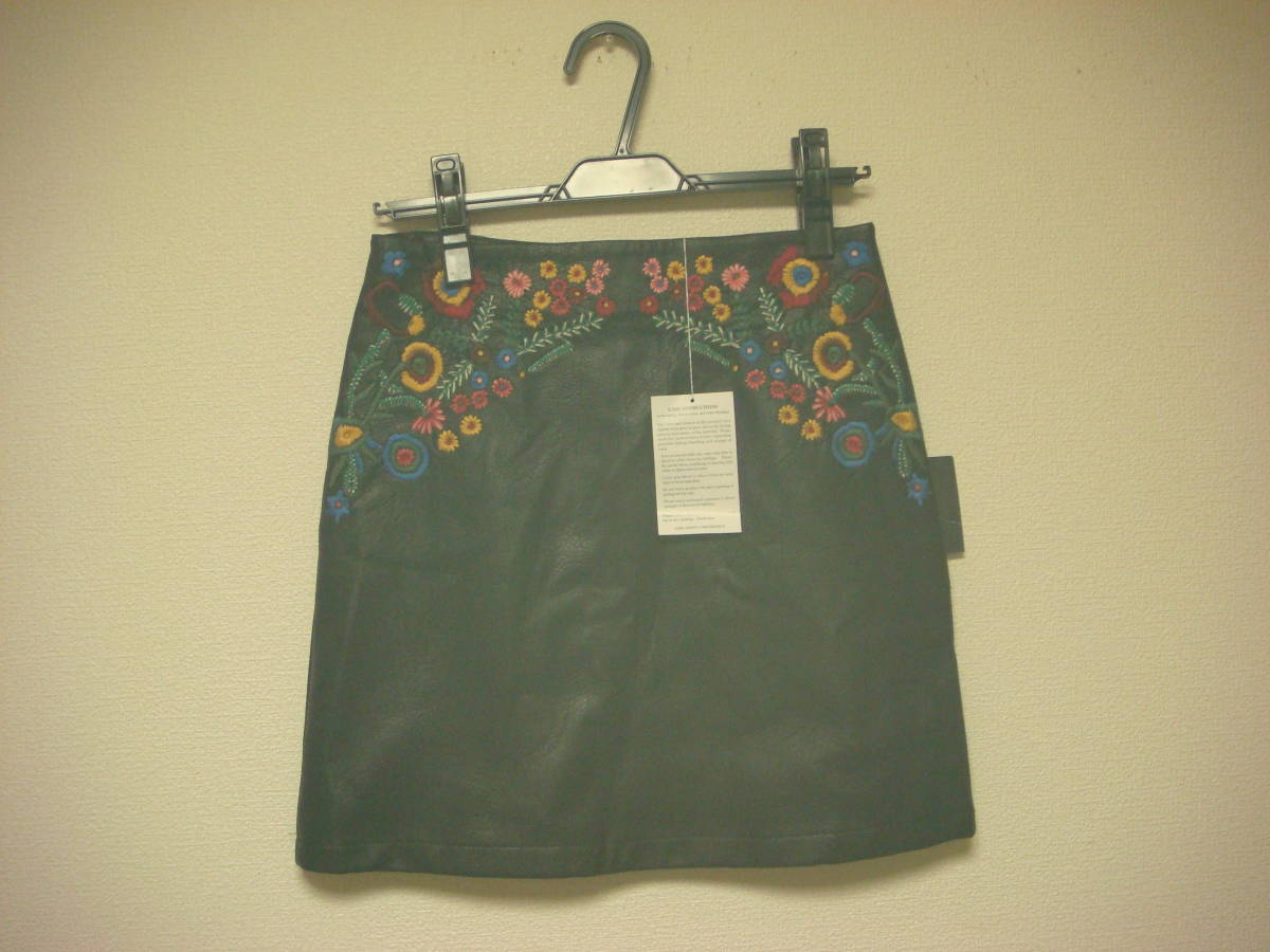 ZARA ザラ 合皮素材 お花刺繍 スカート 黒 タグ付き未使用 新品