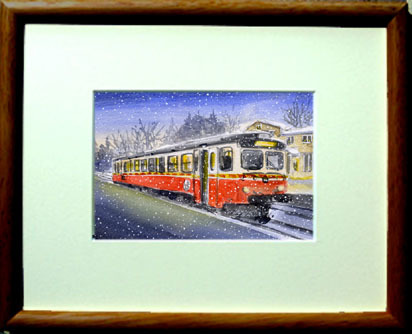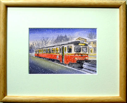 ●【鉄道の水彩画】第 6025号「クリスマス列車」/田中千尋(四季水彩)画 /プレゼント付