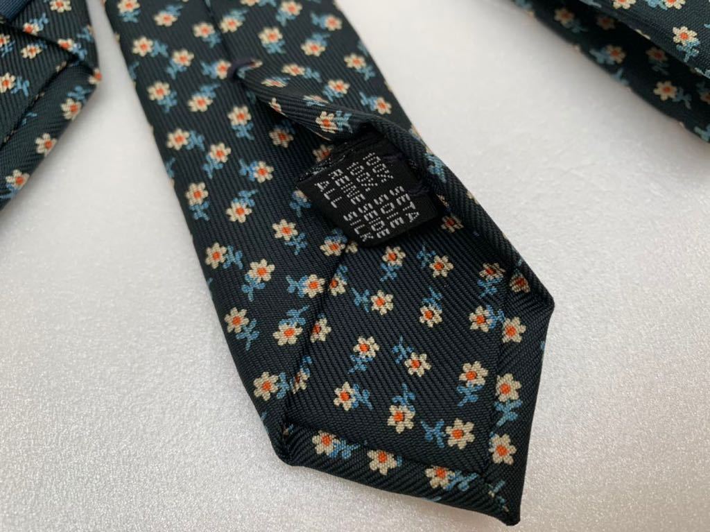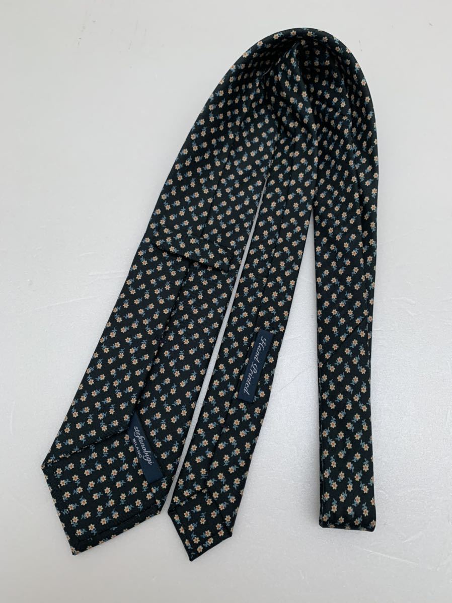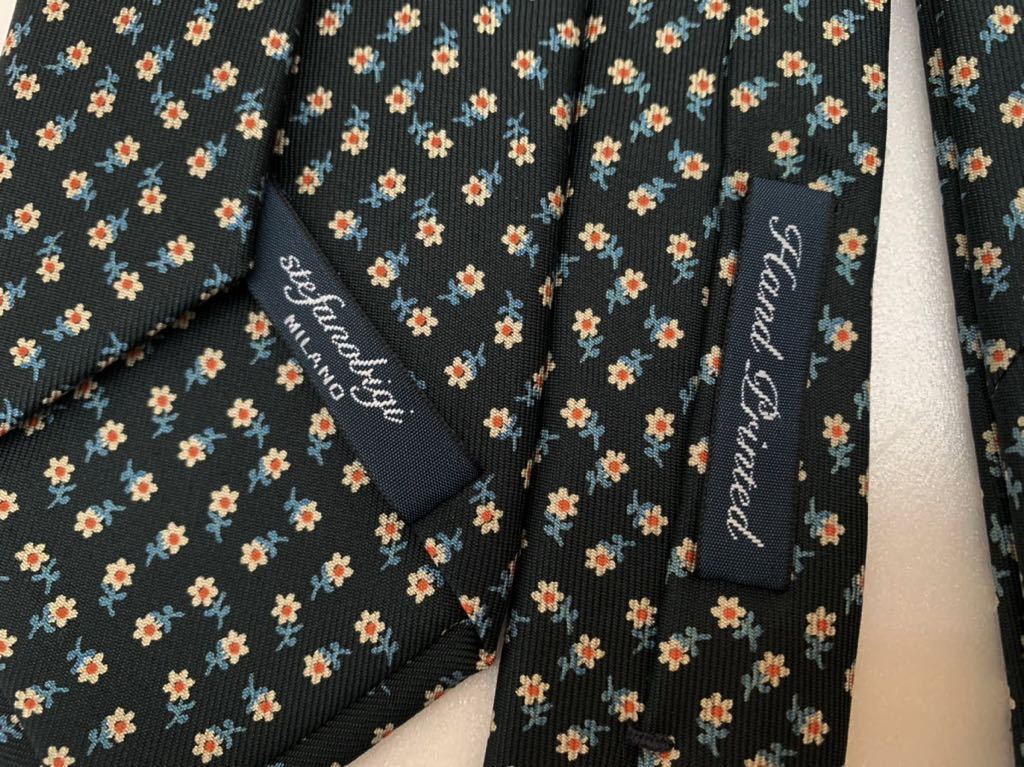 stefanobigi イタリア製ハンドプリントシルクネクタイ 小花柄 フラワー ステファノビジ ネイビー 濃紺