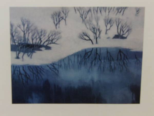 東山魁夷、青の世界、高級画集の一部の作品を画集をほぐして、額装致しました、一枚づつ、厚紙に、張られた作品です、特殊印刷の作品です、作品のサイズは、24cm×17cmです、