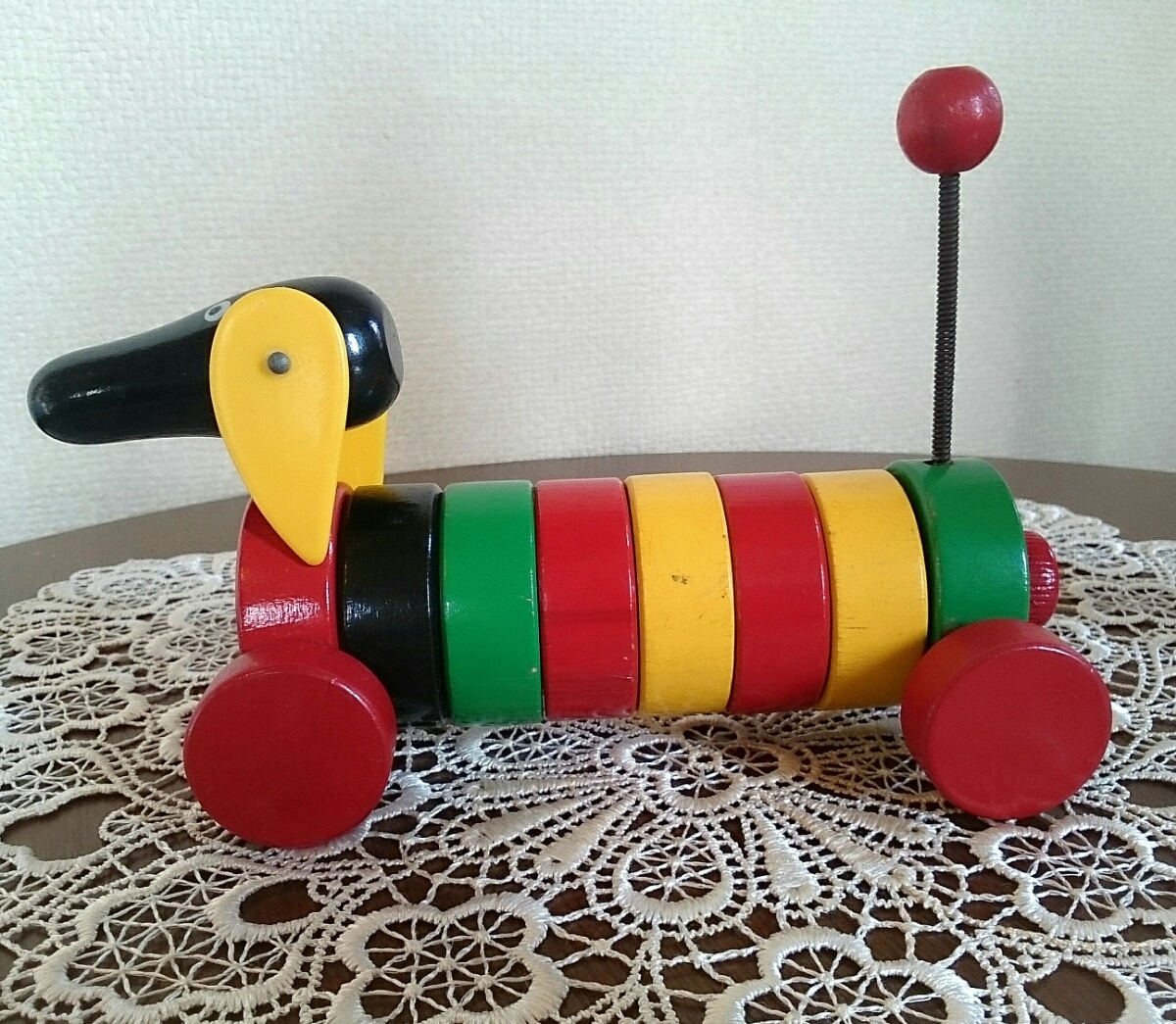 子供の頃、親戚のお下がりに貰ったBRIOの犬型車輪付き積み木