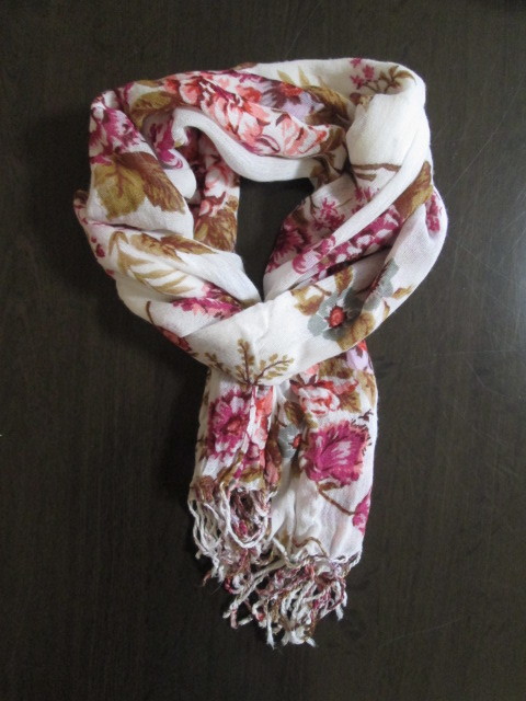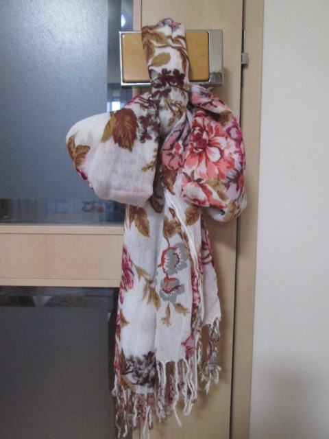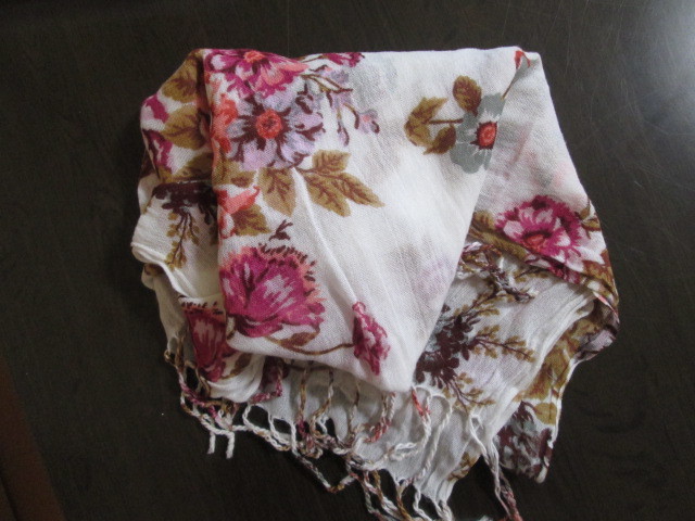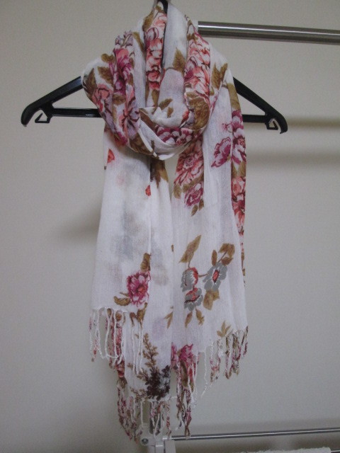 とても肌触りの良い、薄手の花柄ストールです☆ 首に巻いても、バッグに付けても可愛いです(^^)