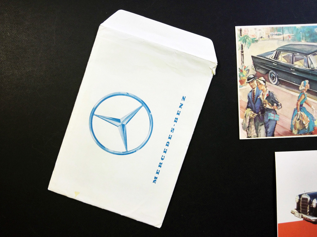 古い メルセデス・ベンツ 販促品 ポストカード 6枚入 セット品!☆ 専用封筒付 MERCEDES-BENZ 180 190 220 外車 旧車 資料 1950~1960