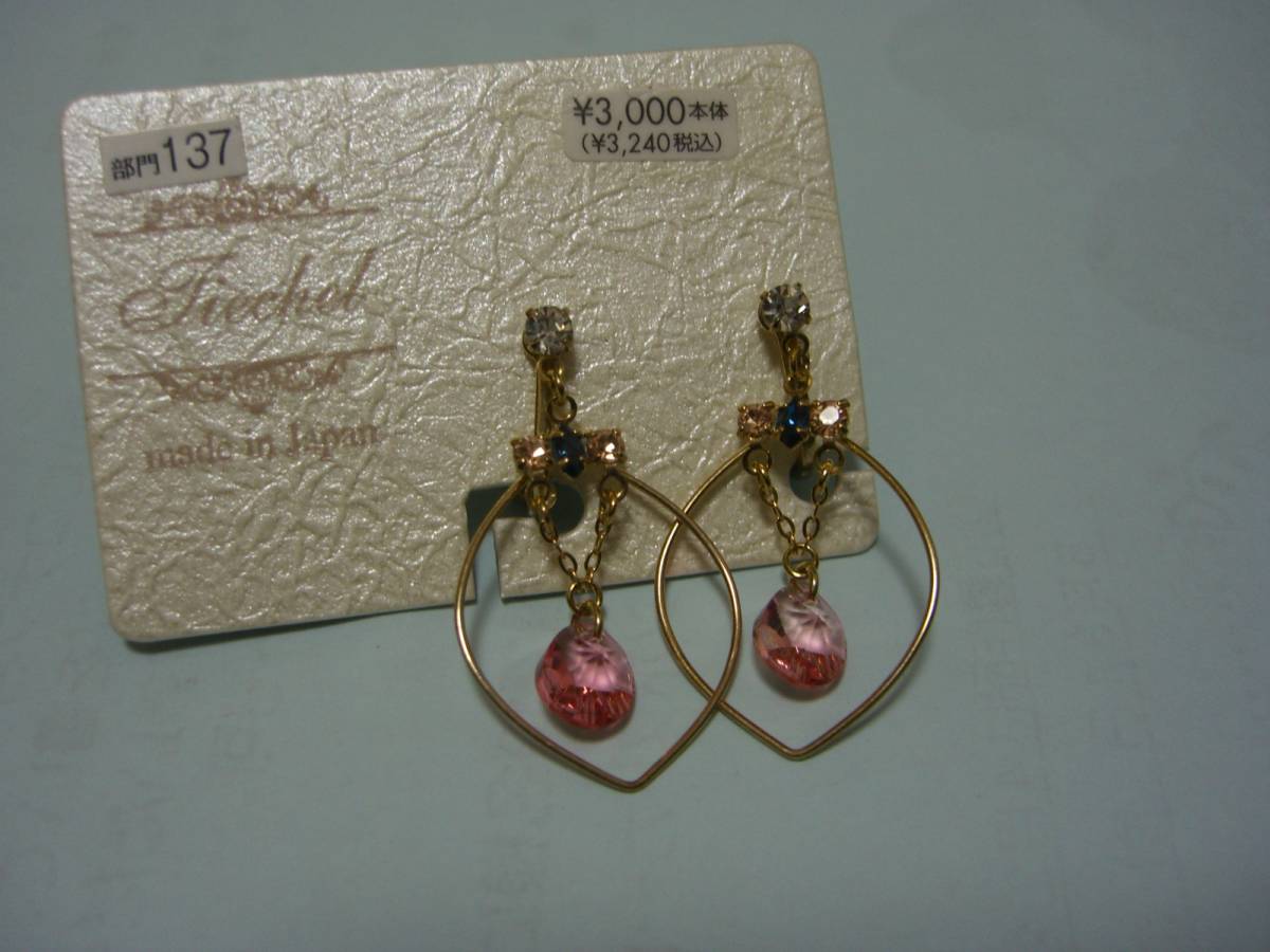 こちらは大きめの夏のワンピースに似合いそうなピンクのイヤリングになります。