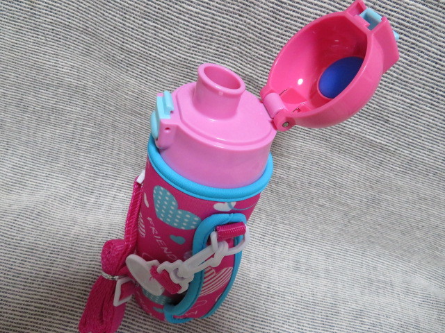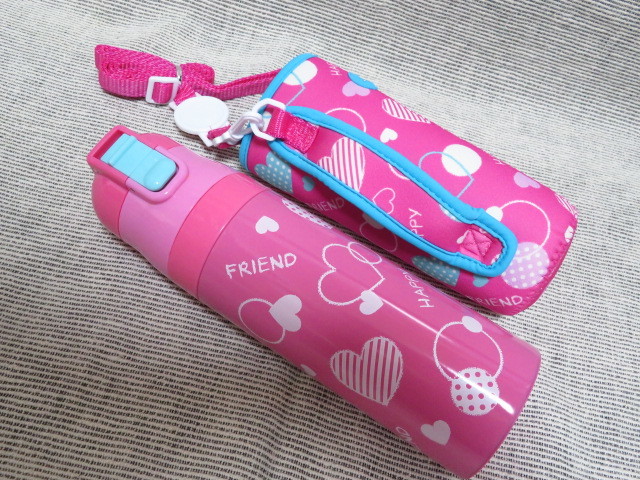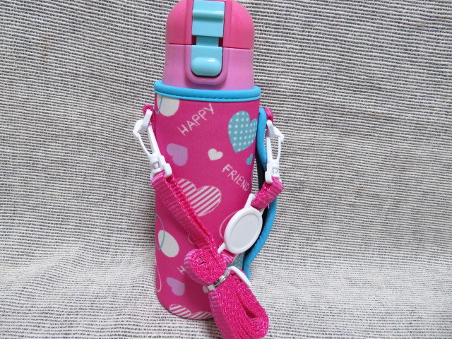 値下!スケーター ハート水玉スウェット生地カバー付きダイレクトステンボトル480 持ち手ショルダーストラップ付 お子様にも!