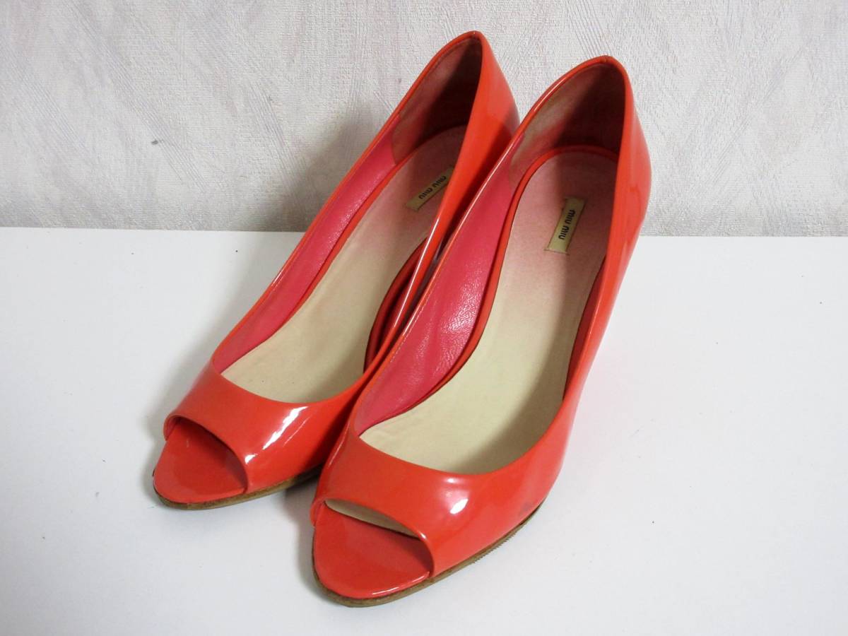 ミュウミュウ miumiu エナメル レザー ウェッジソール パンプス 37 南1442