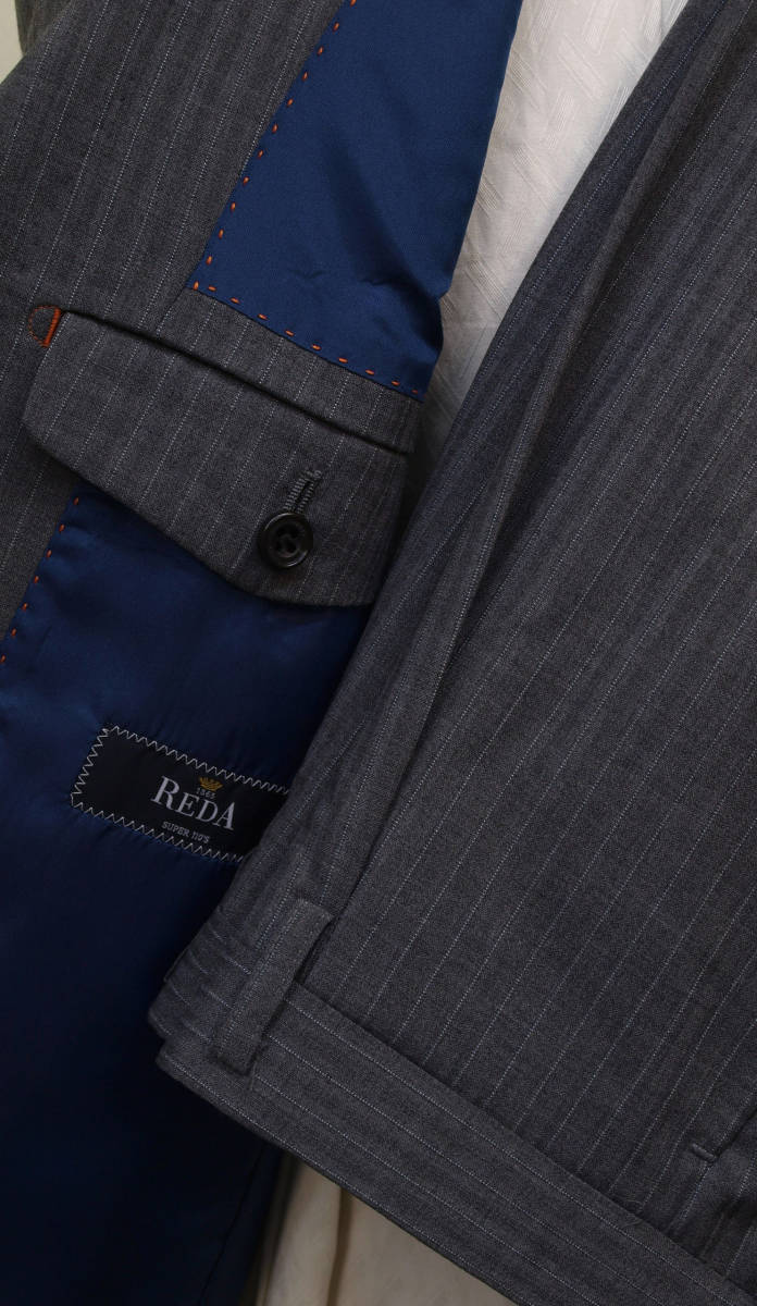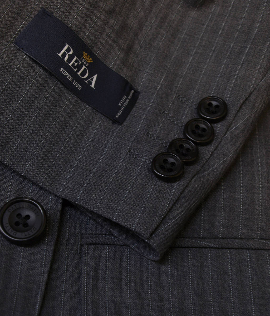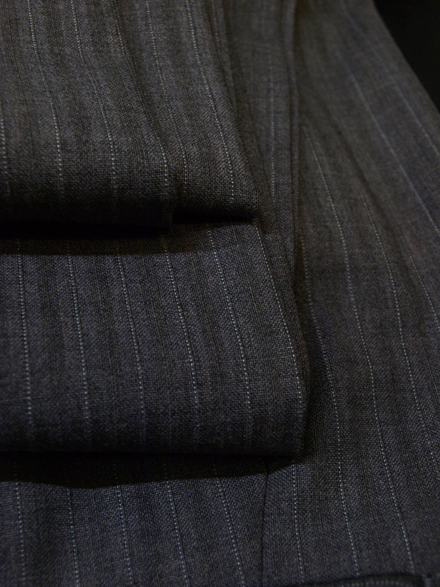【サイズ】 AB4 (ABS号相当) 目安の体型 身長160cm~170cm、ウエストサイズ84cm前後 【ジャケット実寸】 肩幅46cm 着丈69cm 袖丈58.5cm 脇下部分53cm 身幅49cm 【パンツ実寸】 ウエスト(胴回り実寸)84cm わたり幅34.5cm 股下10cm部分31.5cm 裾幅22.2cm 脇股上26cm 前股上27.5cm 股下87cm(裾上げしていない状態/新品) 【素材】 表地:ウール(毛)100% 裏地:胴裏/ポリエステル100% 袖裏/ポリエステル100% ・イタリア、 レダ社(REDA)のSUPER110'S生地を使用 高級イタリア製生地特有のなめらかでさらっとした触り心地の上質な素材です。 【色】 明るめミディアムグレー 【柄】 ライトブルーグレーのラインがはいったストライプ柄 【デザイン】 細すぎずかといってゆとりがありすぎることなく、体型に無理なくきれいにフィットする、シングル2つボタンスーツ、レギュラーフィット、ビジネススーツ新品、裾上げしていない状態です。 ・ジャケットはシングル2つボタンでレギュラータイプ ・パンツは股上は浅くなくウエストラインで履くタイプで少しだけゆとりをもたせたちょうど良いくらいのすっきりシルエットのワンタックスラックスです。 春先~夏~秋口にかけて春夏メインのシーズン対応商品 メーカー希望小売価格 税込み62640円 【縫製仕様】 ・ジャケットはシングル2つボタン、ノッチドラペル、襟元等AMFステッチ入り、袖口ボタン4つ、サイドベンツ、内ポケット4つ(小ポケット2つ含む)、背抜き(春夏物) ・パンツはワンタック、膝裏当て付き、脇ポケット縦付け、後ろポケット両玉縁で左のみボタン付き、フロントはファスナーでホック仕様/うちかけボタンあり、シャツ滑り止め付き 使用付属(肩パット、毛芯等)もワンランク上のを使い、細部まできれいな縫製仕立てで仕上がっております。