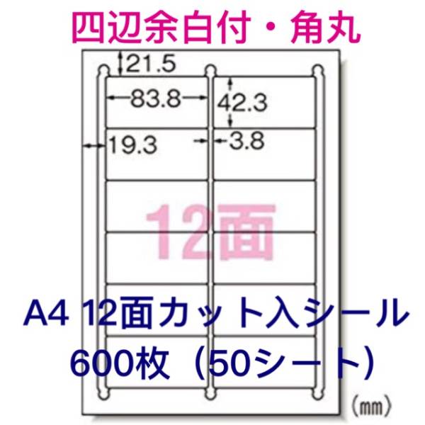 A4サイズ 12面カット入り、ラベルサイズ83.8mm×42.3mm。
