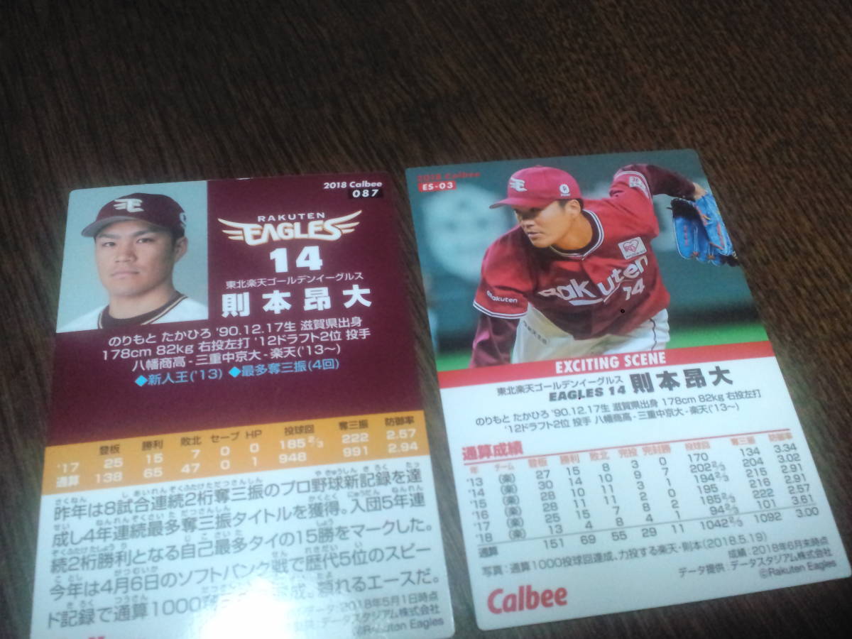[同梱可]★則本昂大(087)&エキサイティングカード(ES-03)☆東北楽天ゴールデンイーグルス★2018年カルビープロ野球カード(2枚)☆