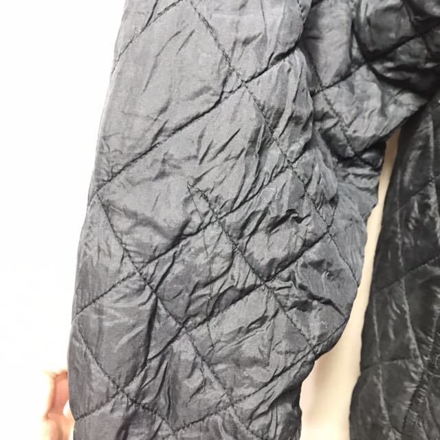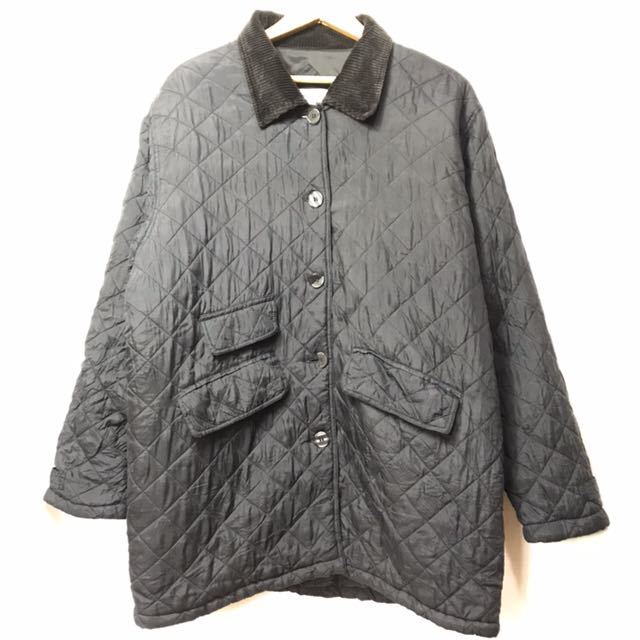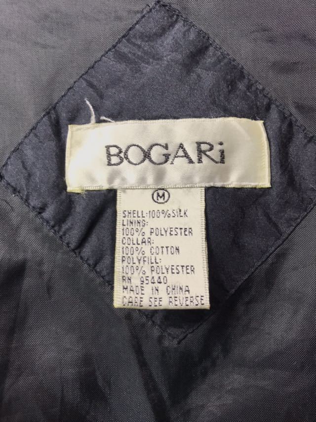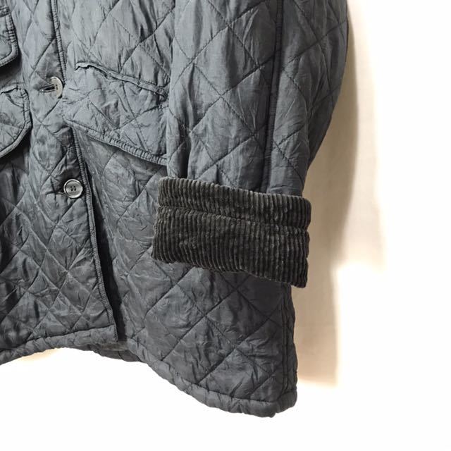 ■女性用 BOGARI コーデュロイ切り替えし 中綿入り キルティング シルク ジャケット/古着 カバーオール風 ブラック 光沢感 SILK サイズM■