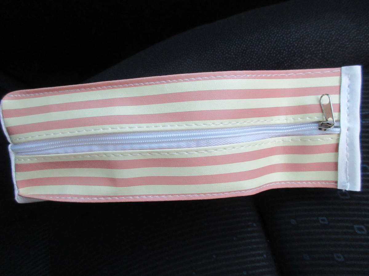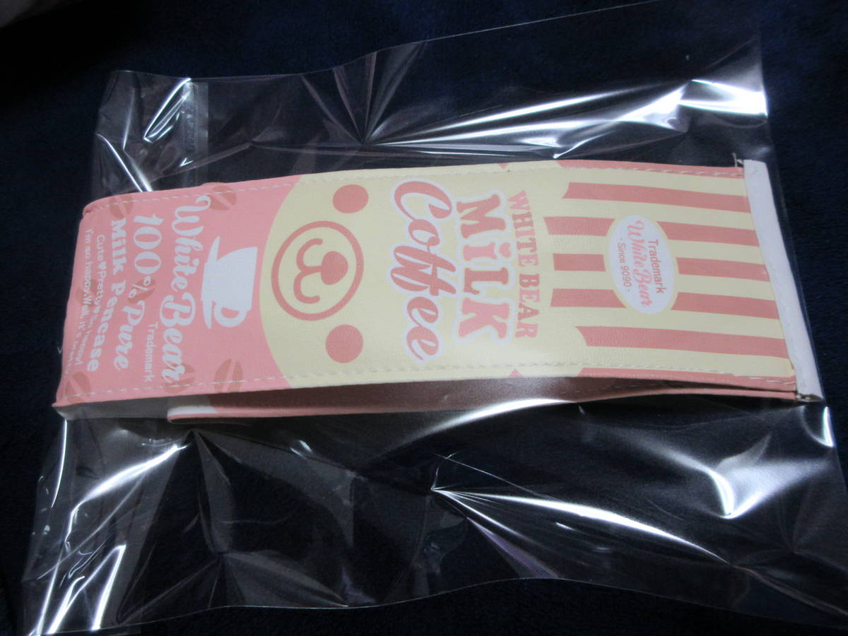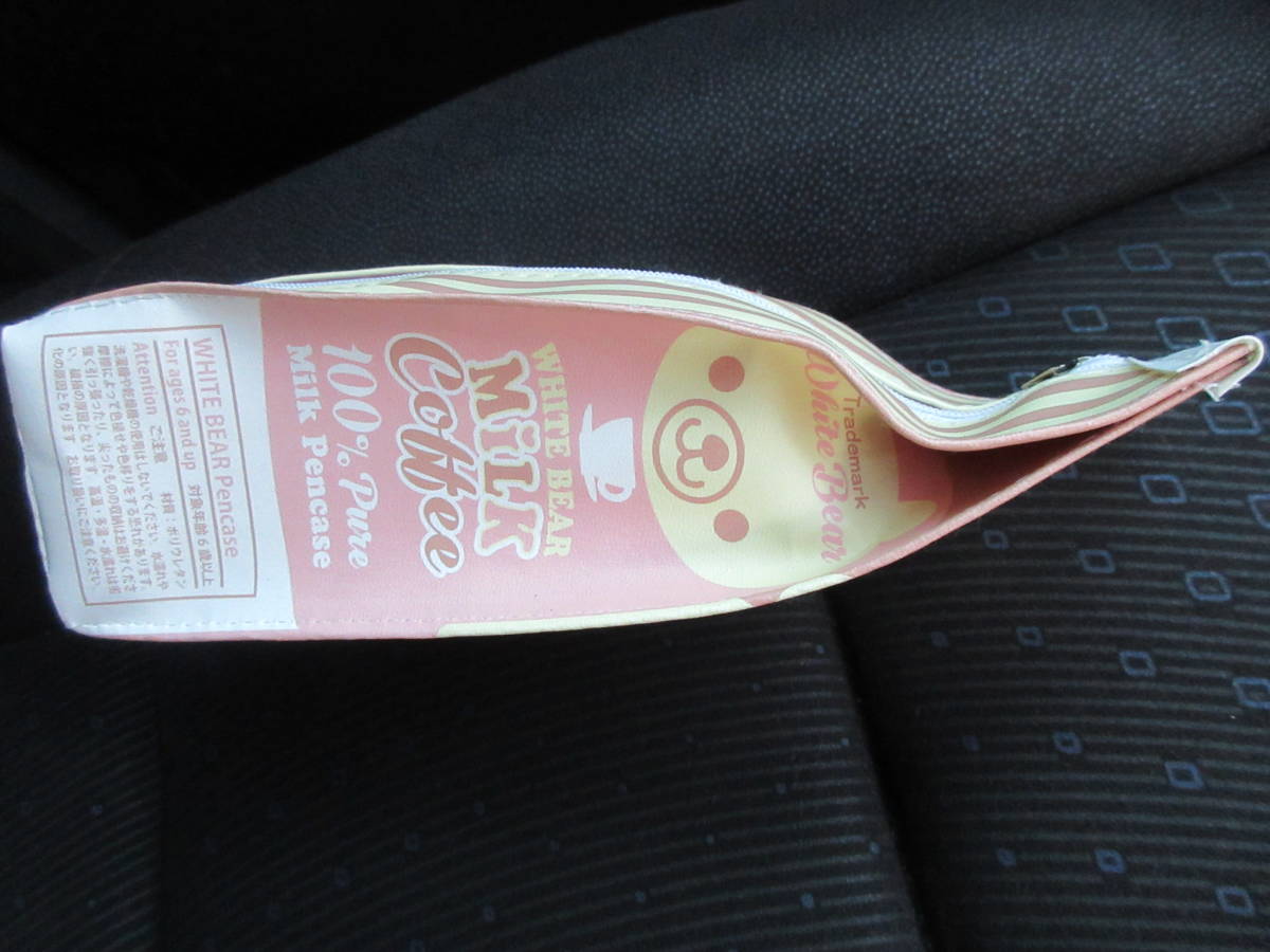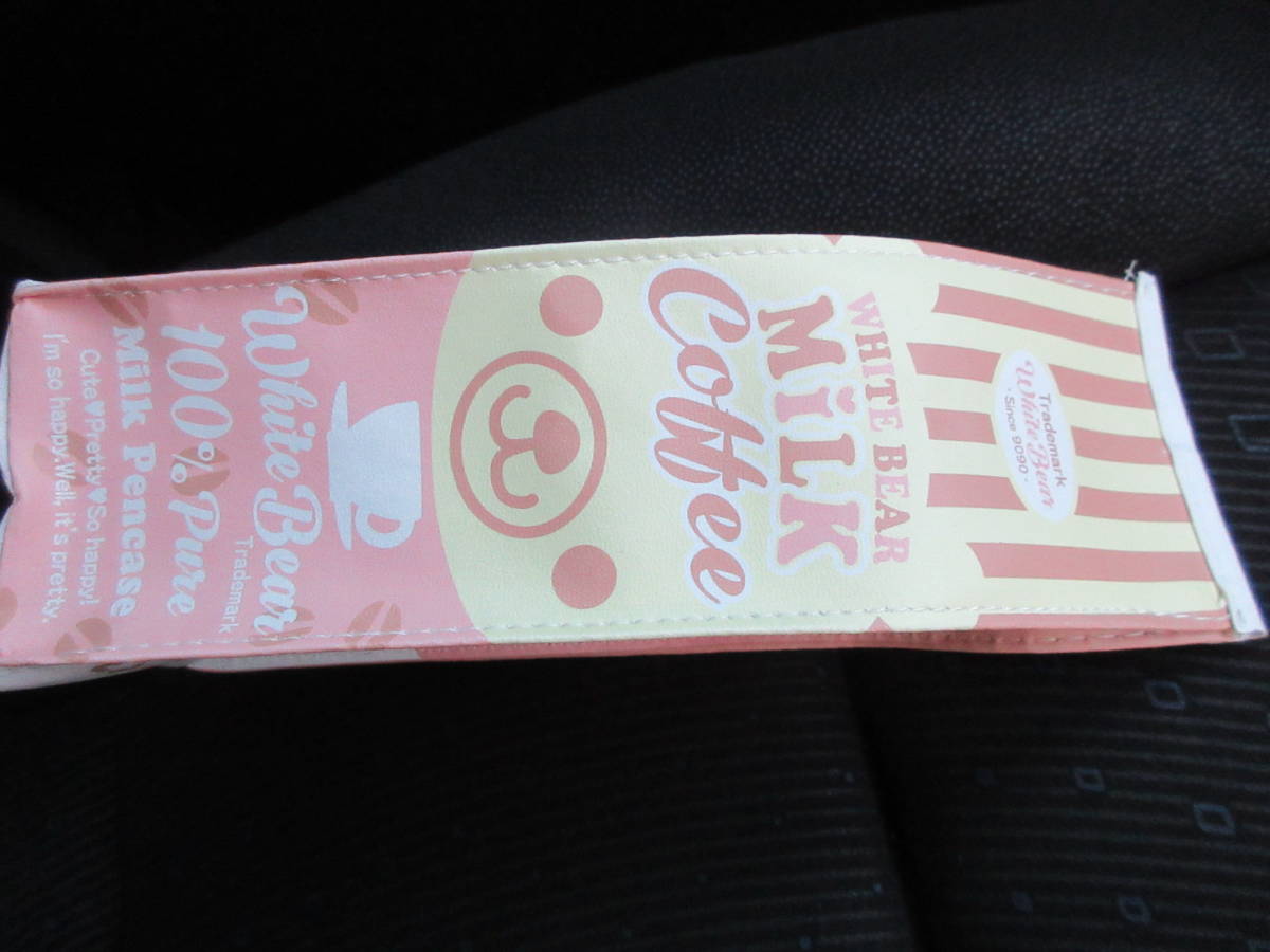 ☆ホワイト ベア ミルク コーヒー ペンケース ピンク ストライプ 牛乳 パック 熊 クマ くま 化粧品 ポーチ★新品未開封