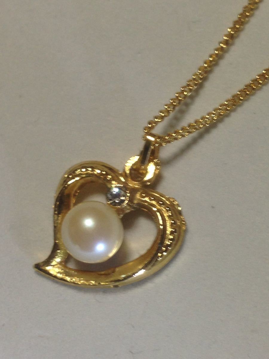 パールのハートの形のペンダントネックレスです、ハートの中に美しいパールになっている、美しいペンダントネックレスです、パールに1点、傷がありますが、ほとんどわからないように思います、パールのサイズは直径8ミリ、ペンダントトップのサイズは18×18ミリ、チェーンの長さは62センチです