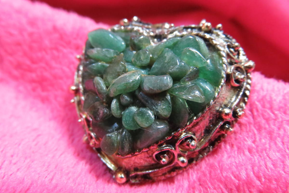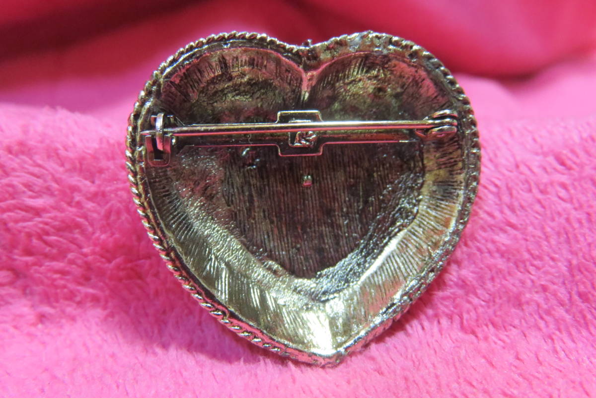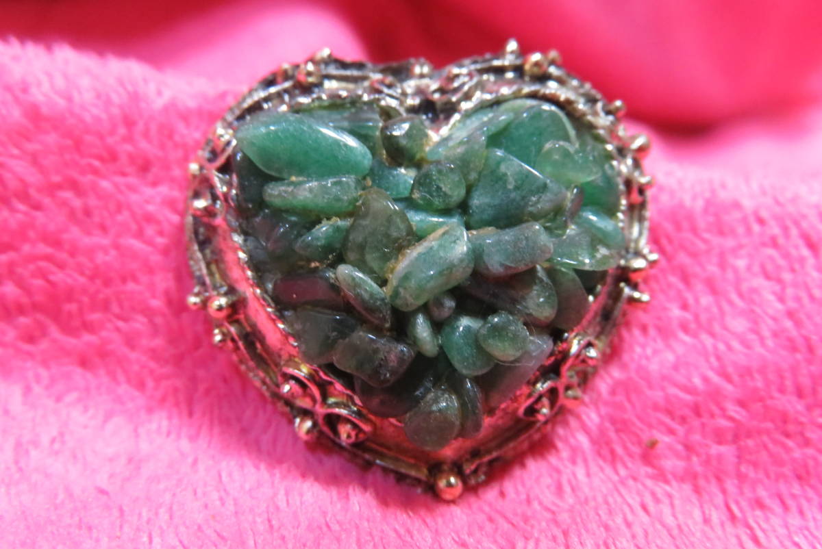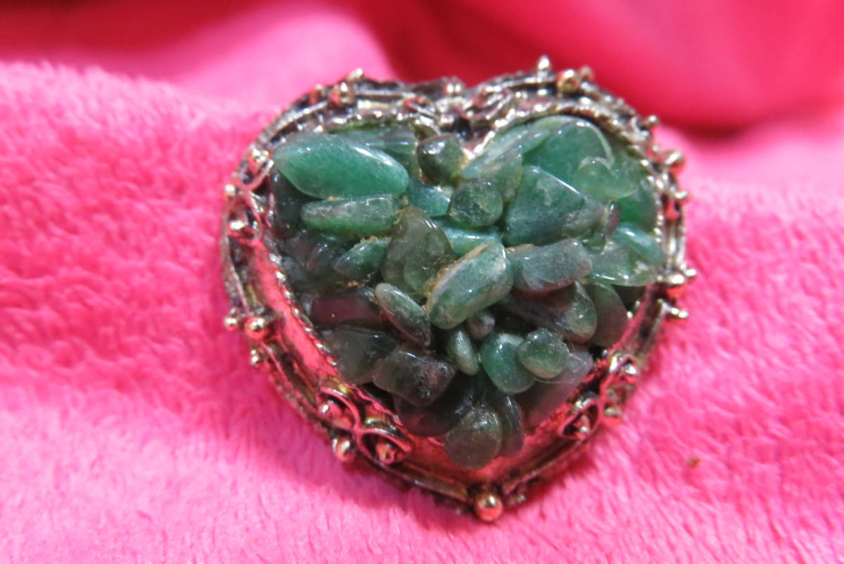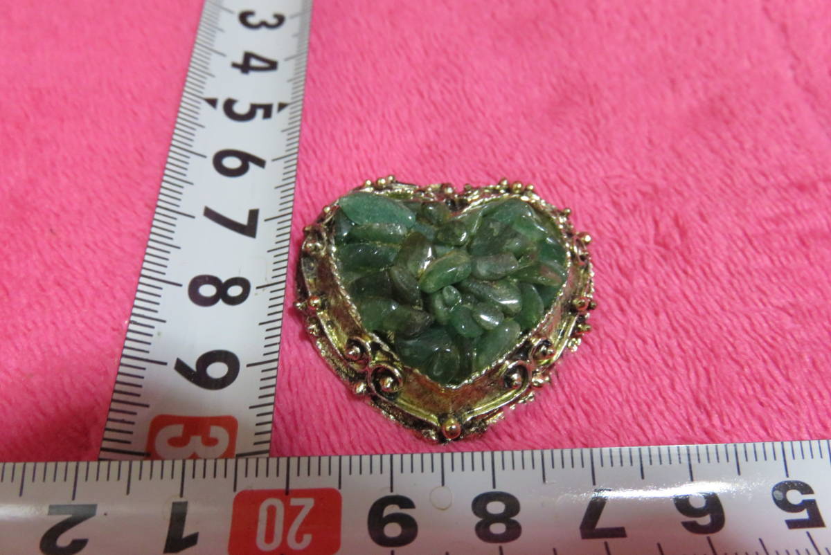 G0366  ブローチ  ハート  天然石  アンティーク調