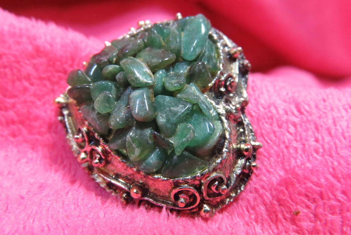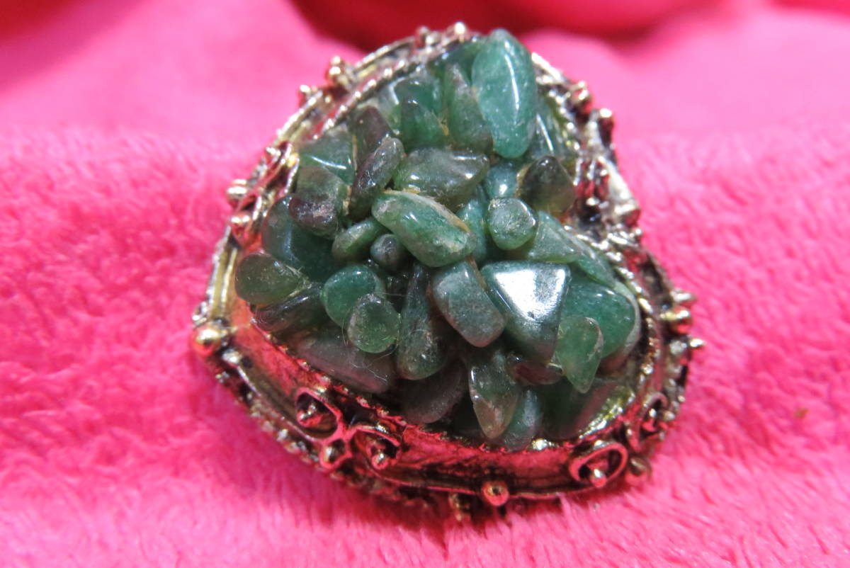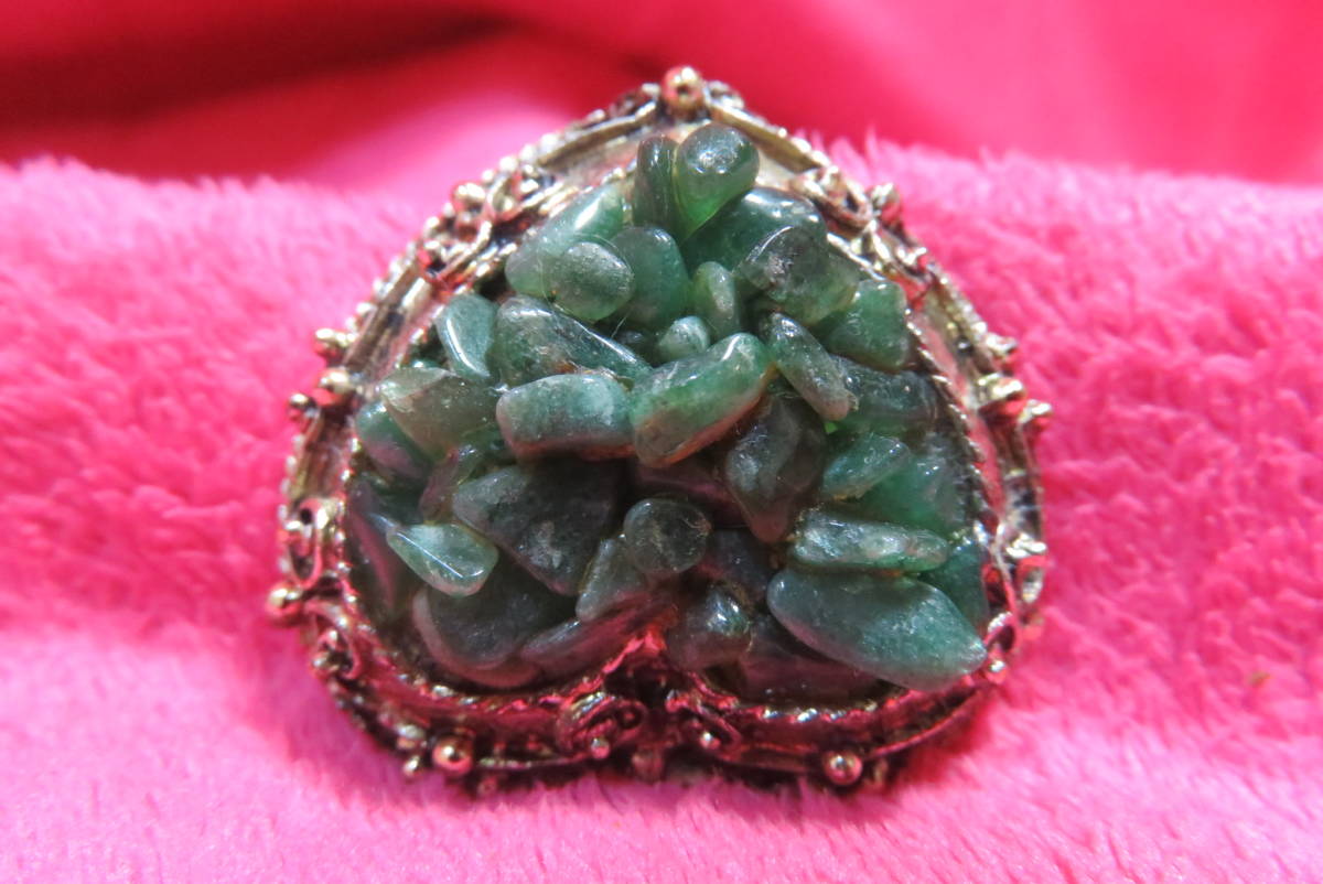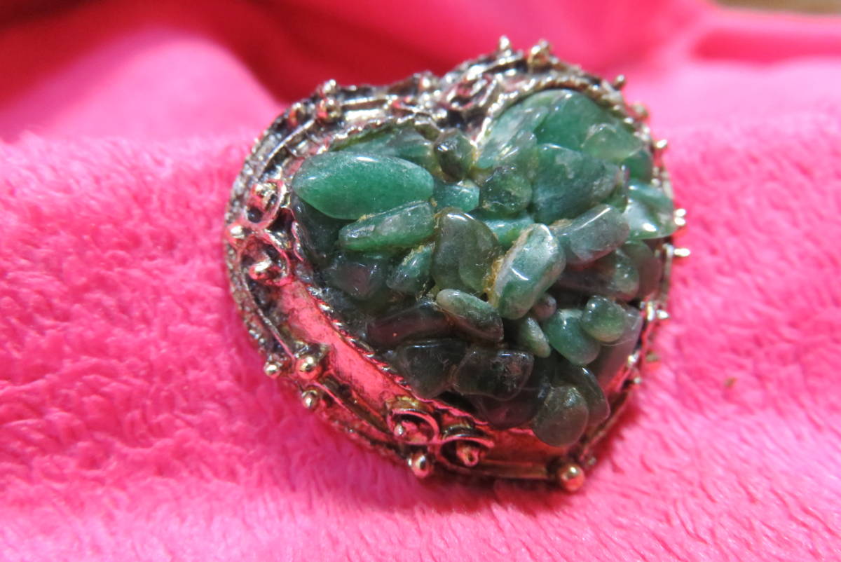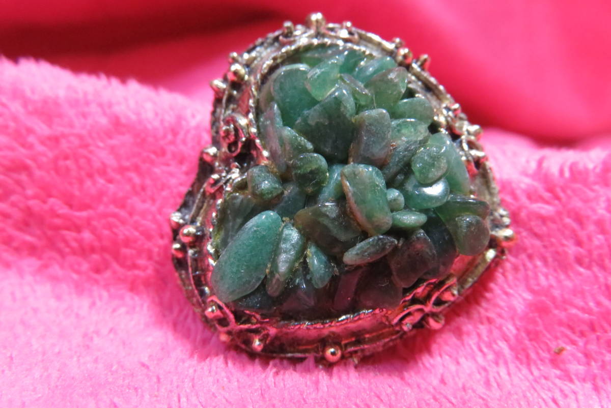 G0366  ブローチ  ハート  天然石  アンティーク調