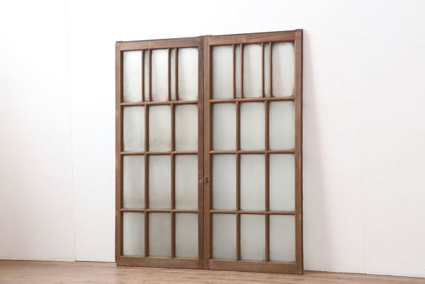 レトロ建具 昭和レトロ 昭和初期 シックなインテリアに馴染むガラス戸2枚セット(窓、引き戸、建具)(R-037124)です。
