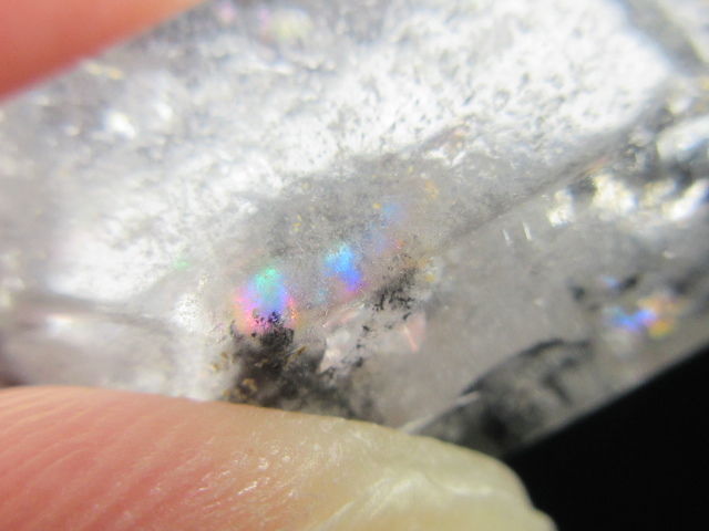 ~ 川流れリバークォーツ・黒色鉱物内包・レインボー・極美品 ~