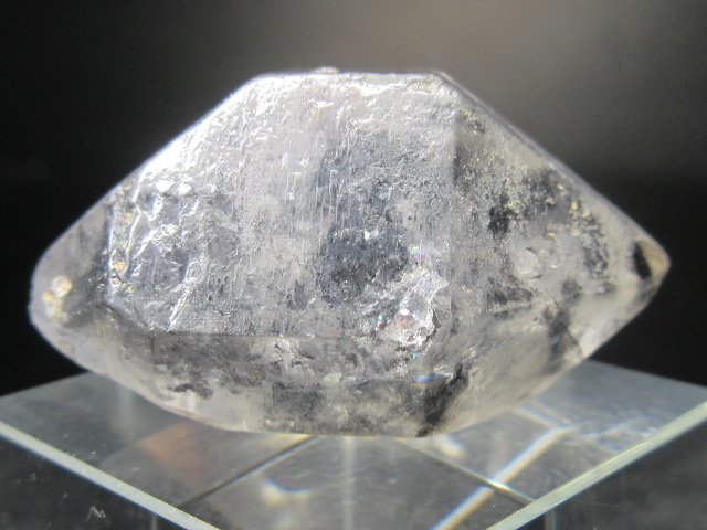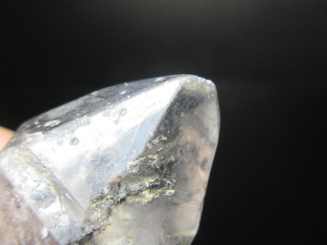 ご覧のように主に両端がポイント(ダブルターミネーター) となっており、内部に黒い内包物(炭素やマンガンと言われる) や太古の水を湛えていることが多い、大変に魅力的な水晶です。