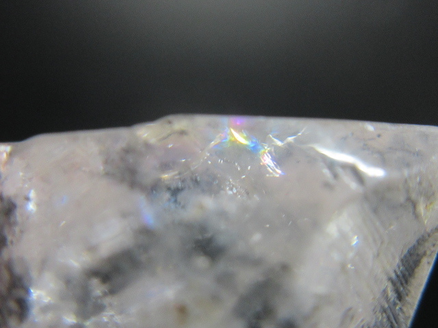 ・内部にはレインボーや黒色鉱物が見られる、素敵な逸品です。