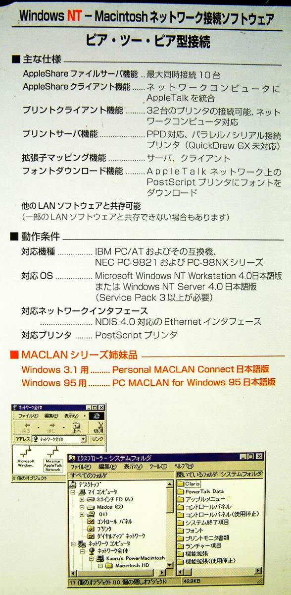 【4095】PC MACLAN Windows NT用 未開封 PCマックラン (ファイル/プリンタ)共有 サーバー AppleShare (Windows-Macintosh)ネットワーク接続