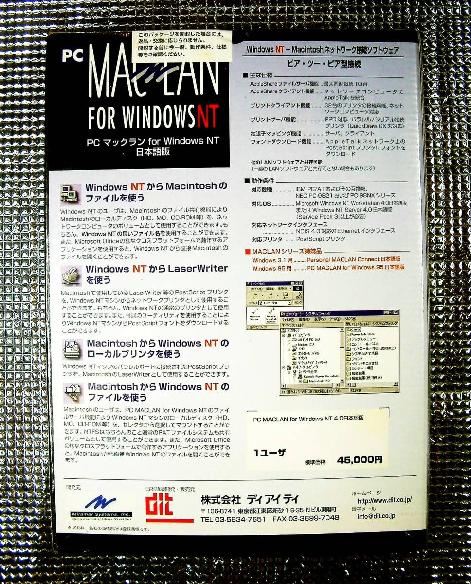 ディ アイ ティ PC MACLAN for Windows NT(JAN:4943350200361)の未開封品です。 詳細画像