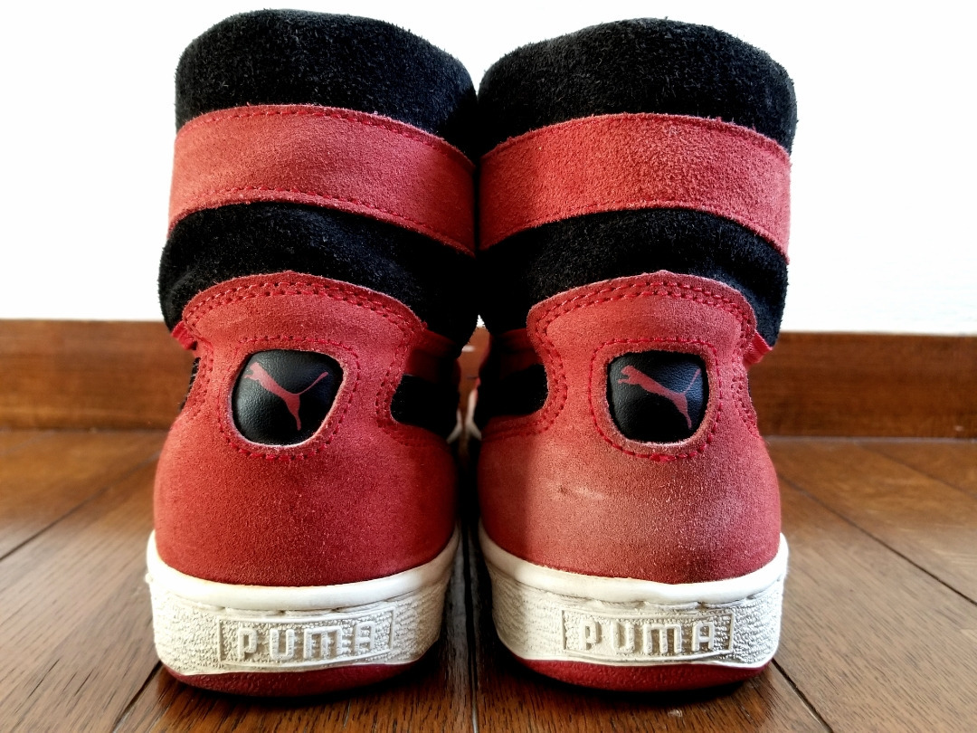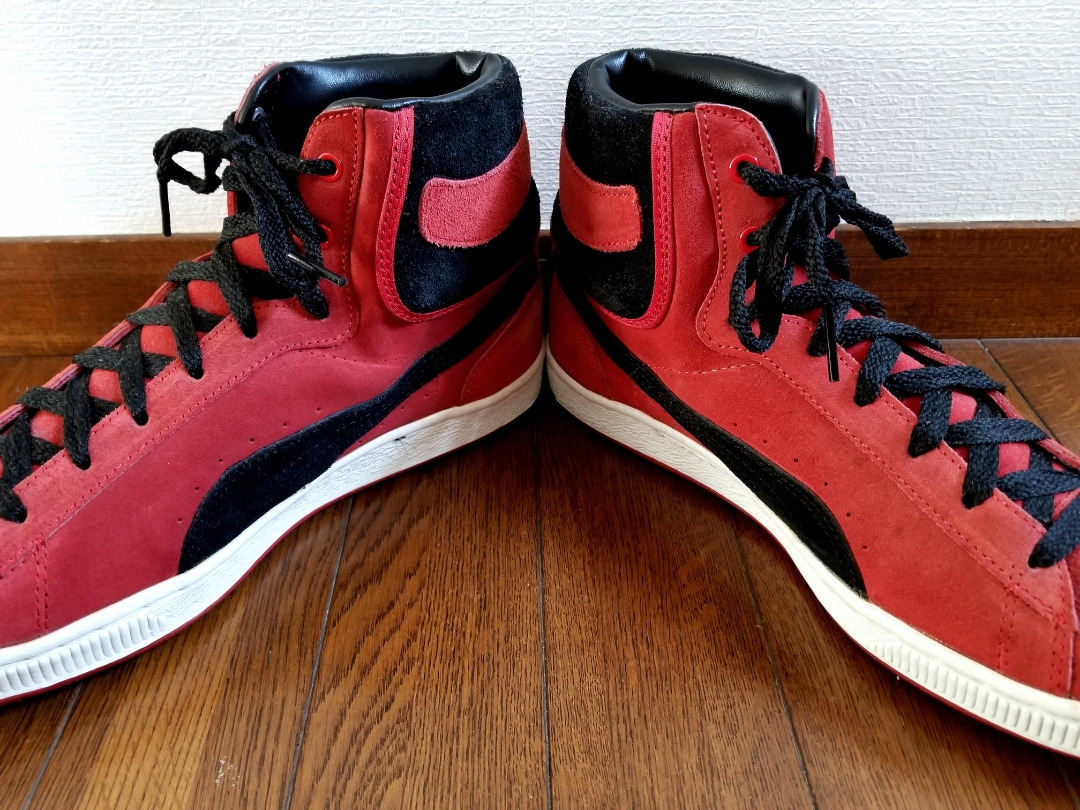 黒×赤の人気の高いカラーリングの一足で、サイズ表記はUS9ハーフ(27,5cm)です。