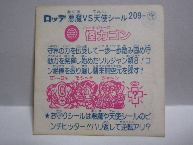 ビックリマンシールです。 怪力ゴン(はーきゅりーずごん)(お守り)No.209 汚れあります。 |